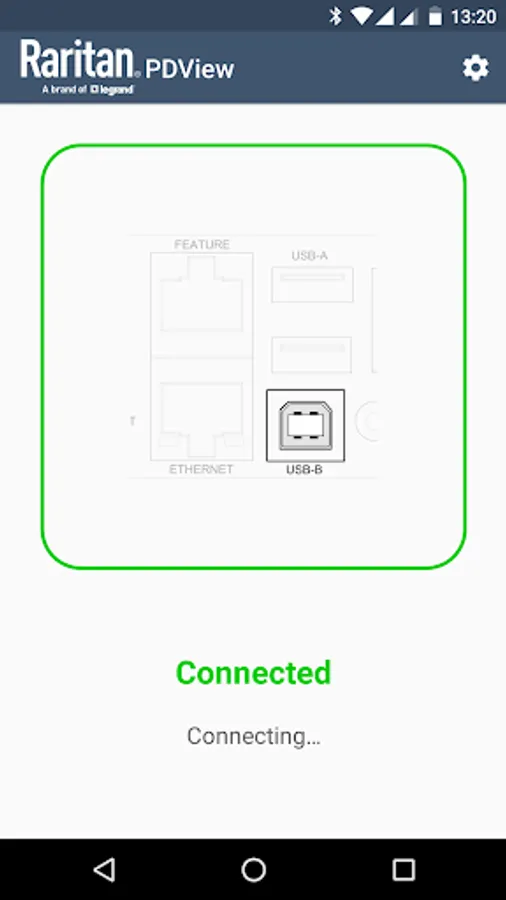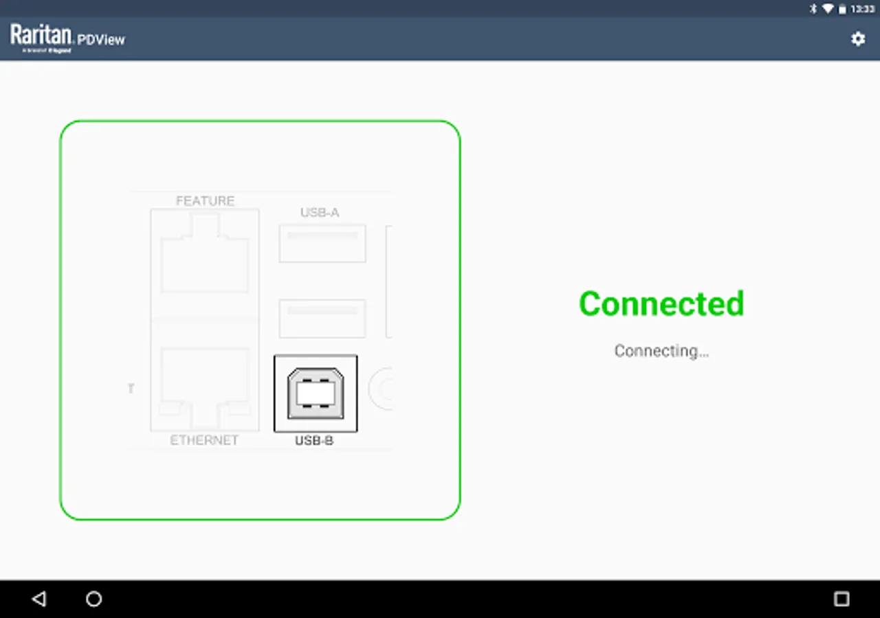 Connect your mobile device to the port labeled 'USB-B' on your Raritan unit using the USB OTG cable/adapter.