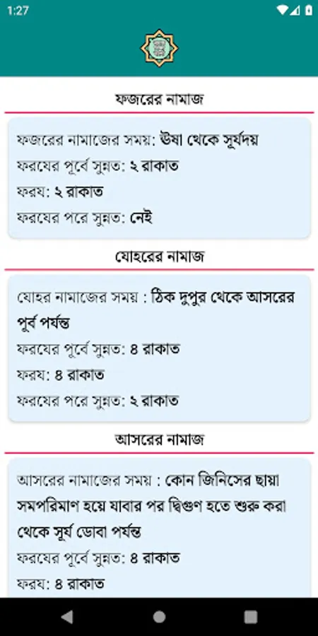 - নামাজের ওয়াক্ত ও রাকাতসমূহ