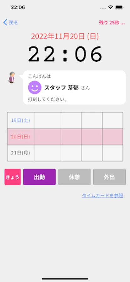2. The time clock can be used not only for the day ("today") but also for "yesterday" and "tomorrow". For example, if you are going to work the day before, you can select "Tomorrow" and stamp it.