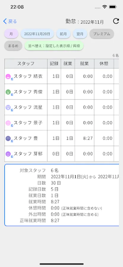 3. Timecard Records-You can register and manage records up to 2 years ago, and old records over 2 years old are automatically deleted. For "Premium Staff", you can register and manage records up to 5 years ago.