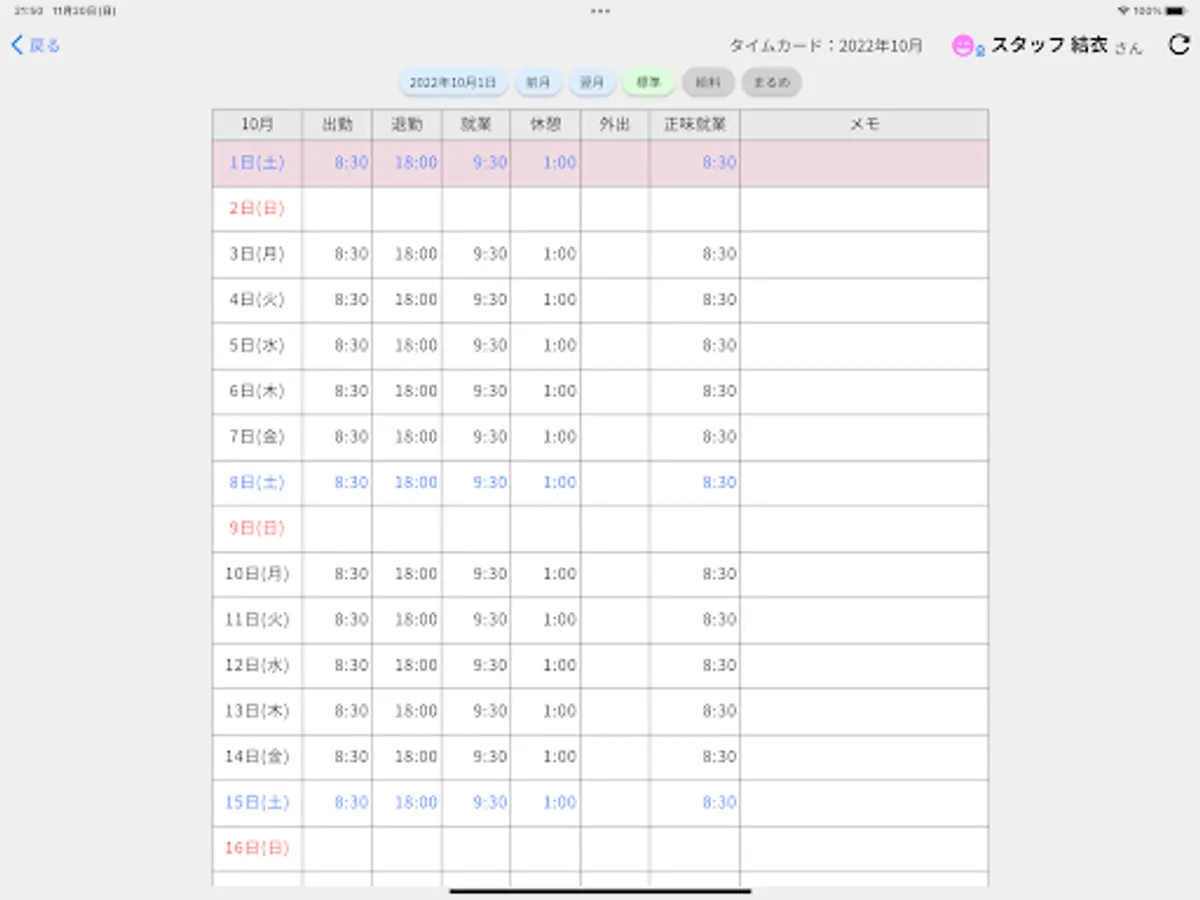 4. Staff attendance / time card display and salary calculation are done on a monthly basis, but you can set the start date of the month at that time. For example, if the 25th of every month is closed, you can set "26th of the previous month" as the first day of the month in the settings to display the attendance / time card from "26th of the previous month" to "25th of the current month". , You can calculate your salary.