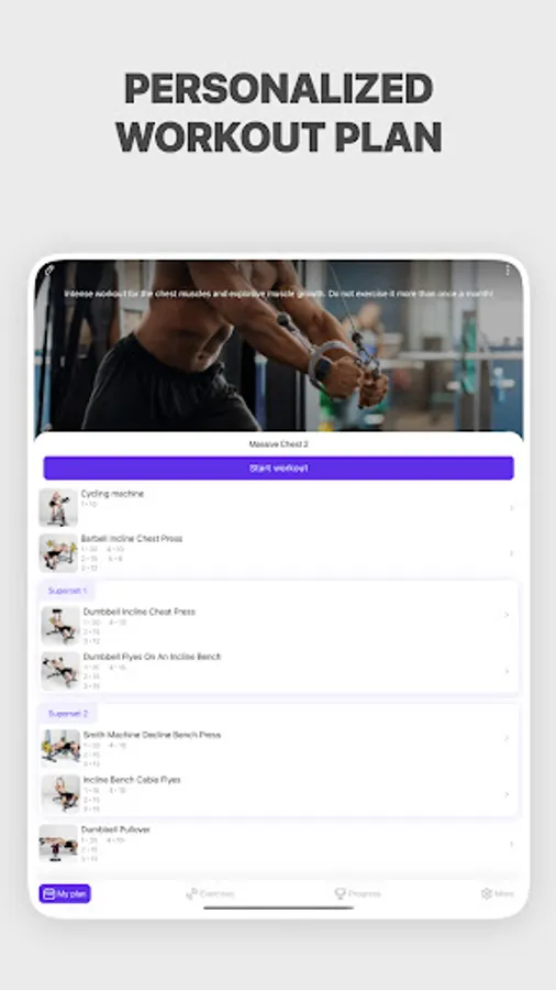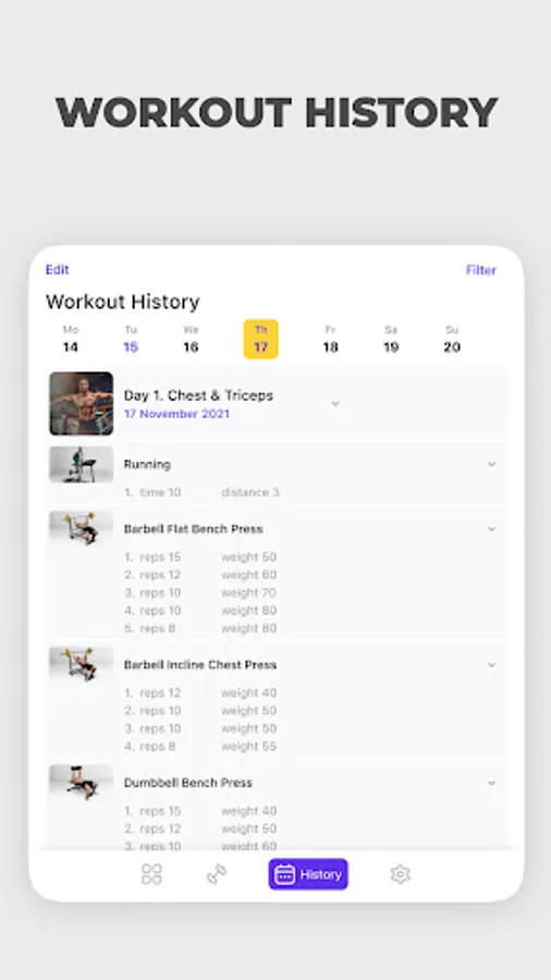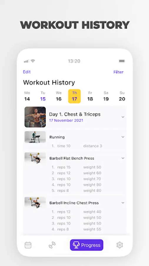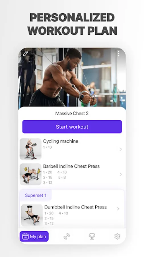 • Create a personal training plan using the large library of exercises for different muscle groups.