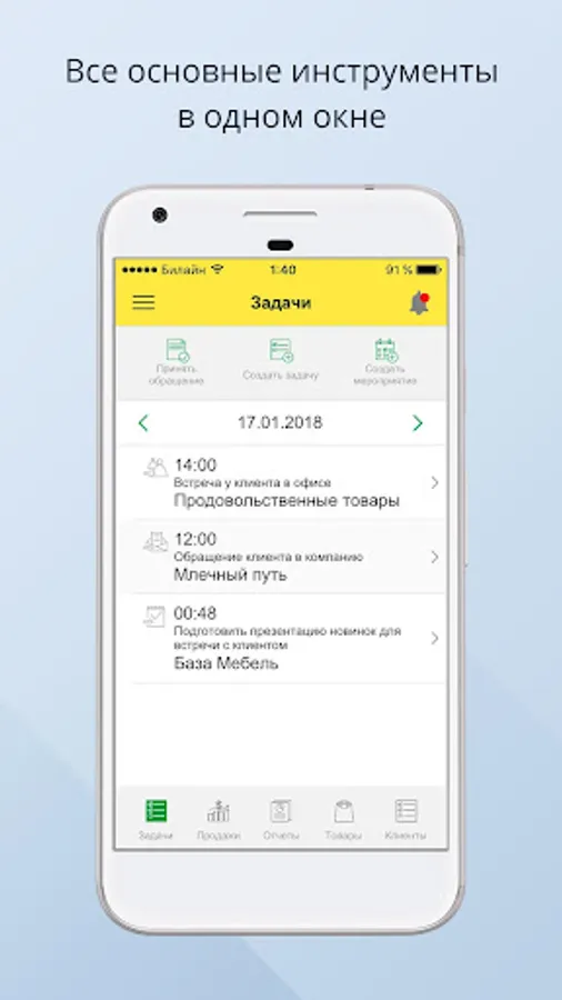 - view tasks and interactions, scheduled for the current day with the help of to-do-list;