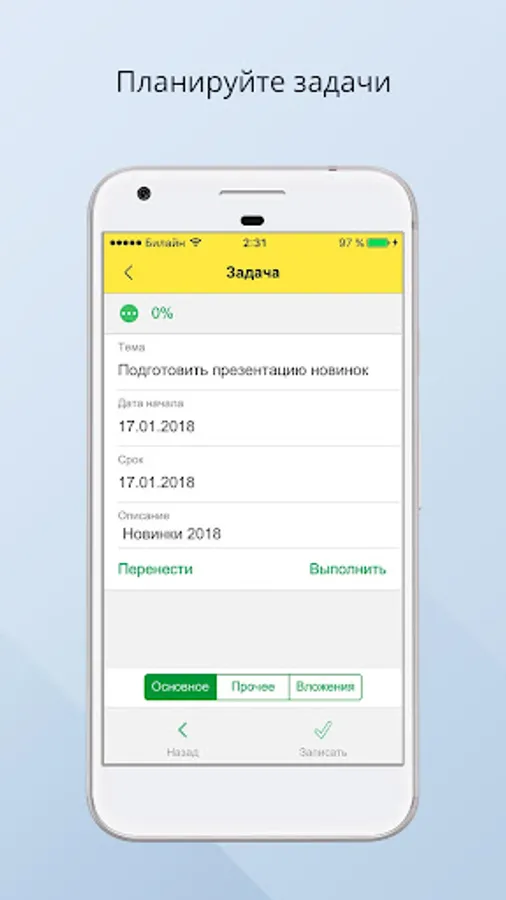 - Create tasks in the application. Get a reminder when the task that the task is overdue;