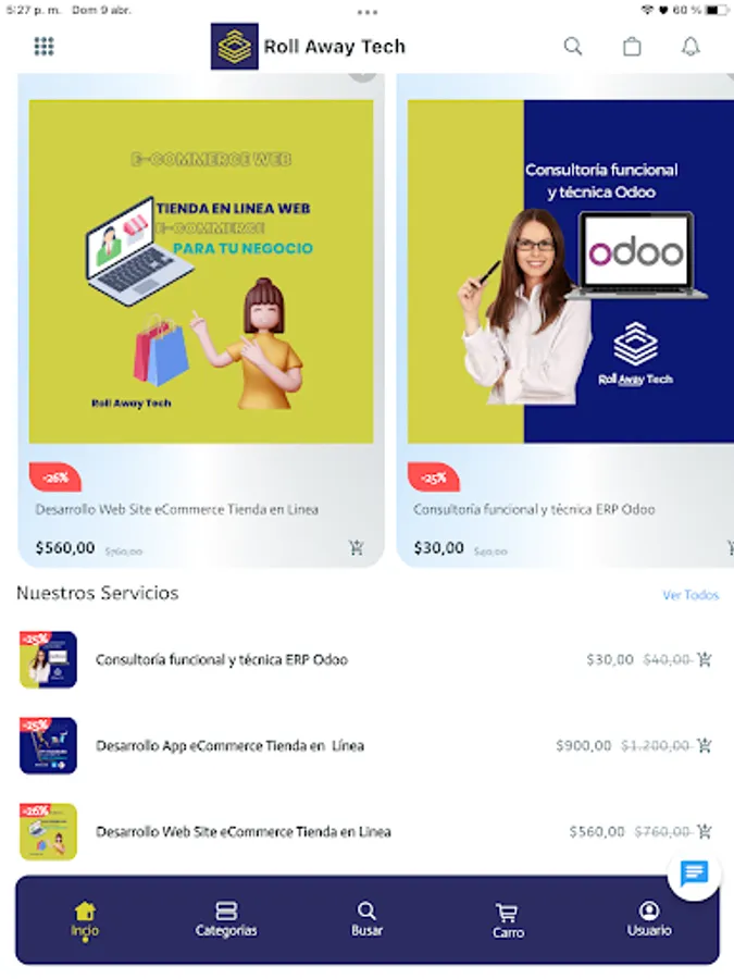 Roll Away Solutions makes its eCommerce App available to its customers to offer a catalog and online store of its services so that its customers can have up-to-date, first-hand information and can make inquiries and orders through this App.