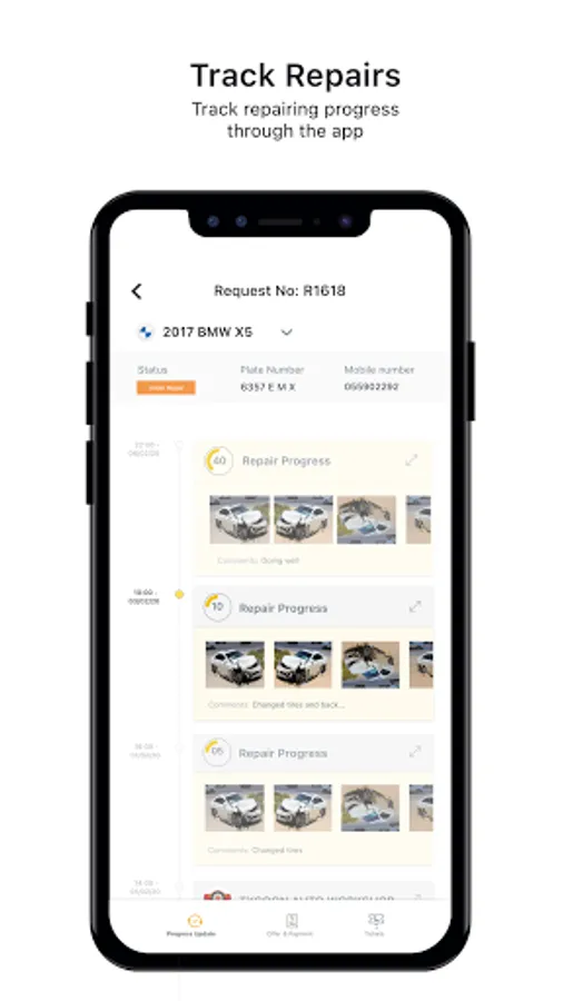 • Repair Progress: From the application, you can see everything, repair status, pictures of your vehicle, all in one place.