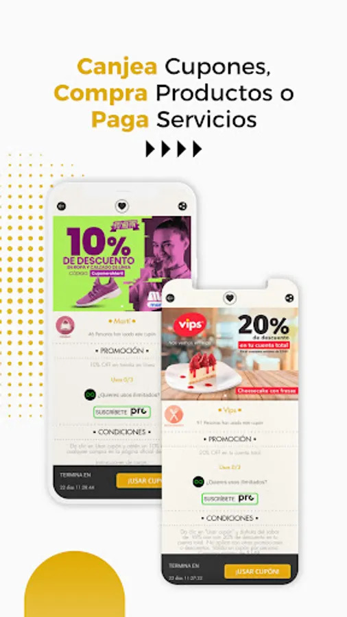 Download Cuponerapp and start discovering recommendations for restaurants, services, shops, entertainment parks and food, which you can visit with exclusive promotions.