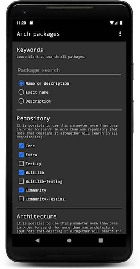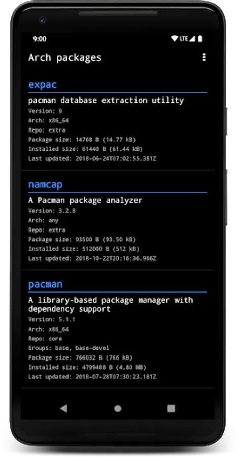 The application makes use of the official API to browse the Arch Linux packages repos.