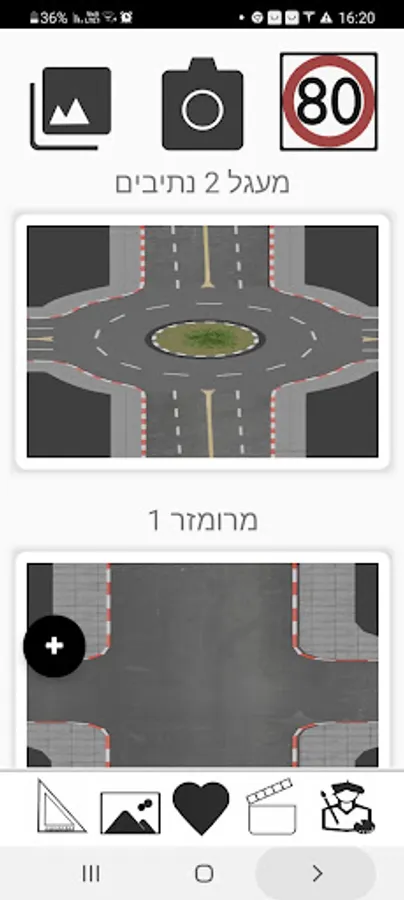 לרשותכם עומדים עשרות רקעים מוכנים ומאות חלקים להרכבת צמתים וכבישים החל מסימני דרך ורמזורים לסוגיהם. ניתן להקים כמעט את כל סוגי הצמתים.
