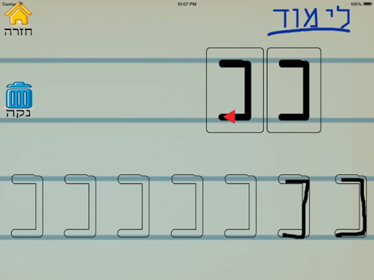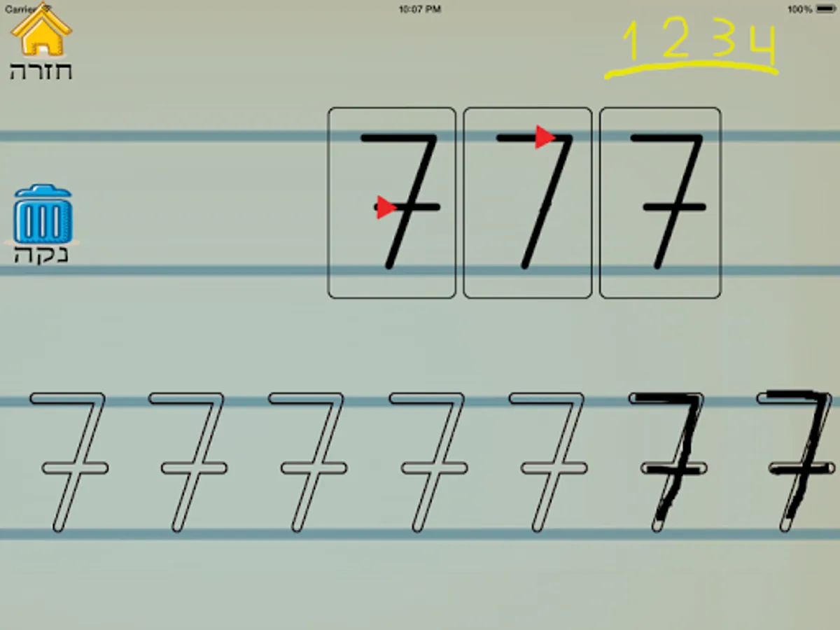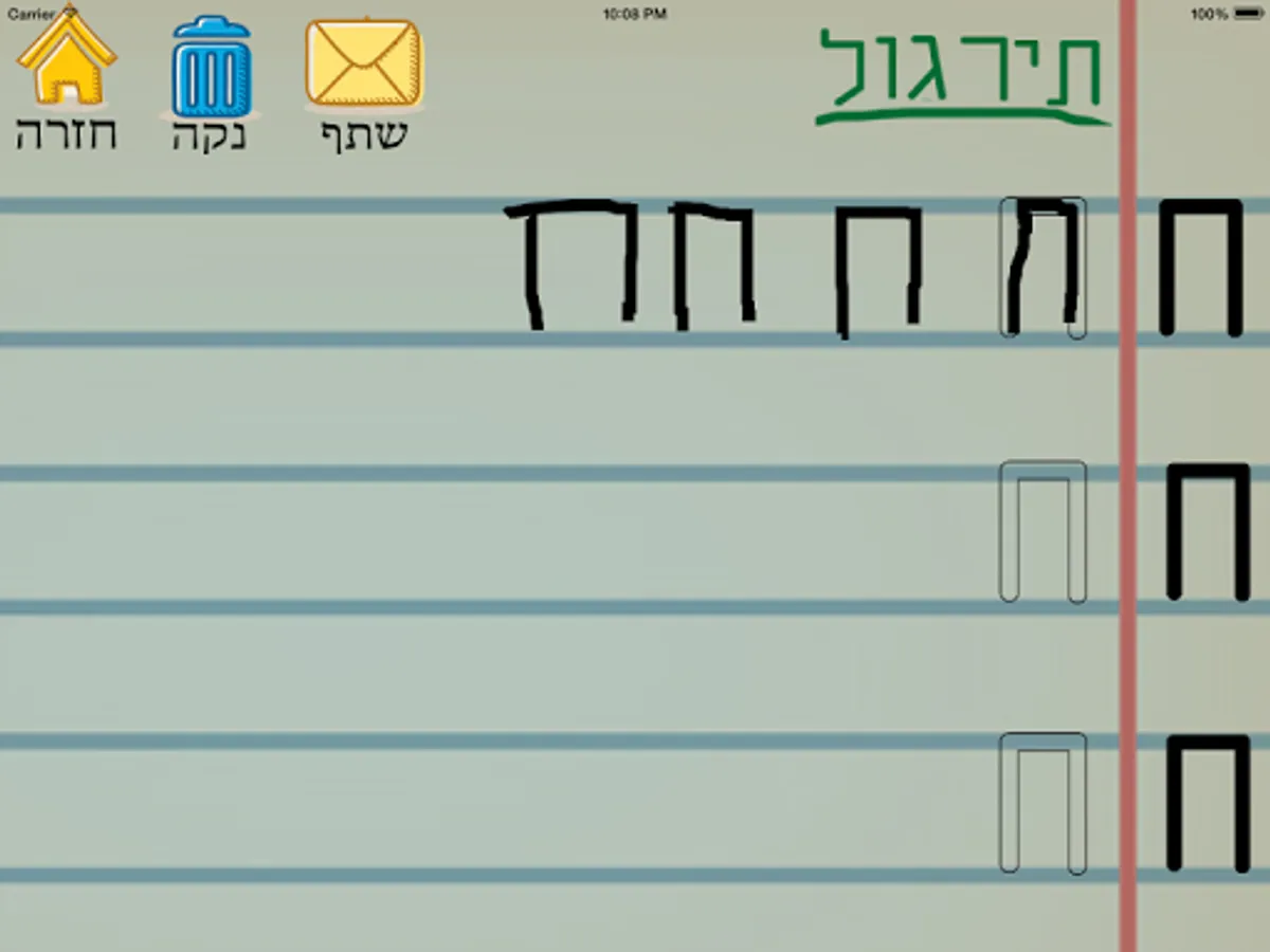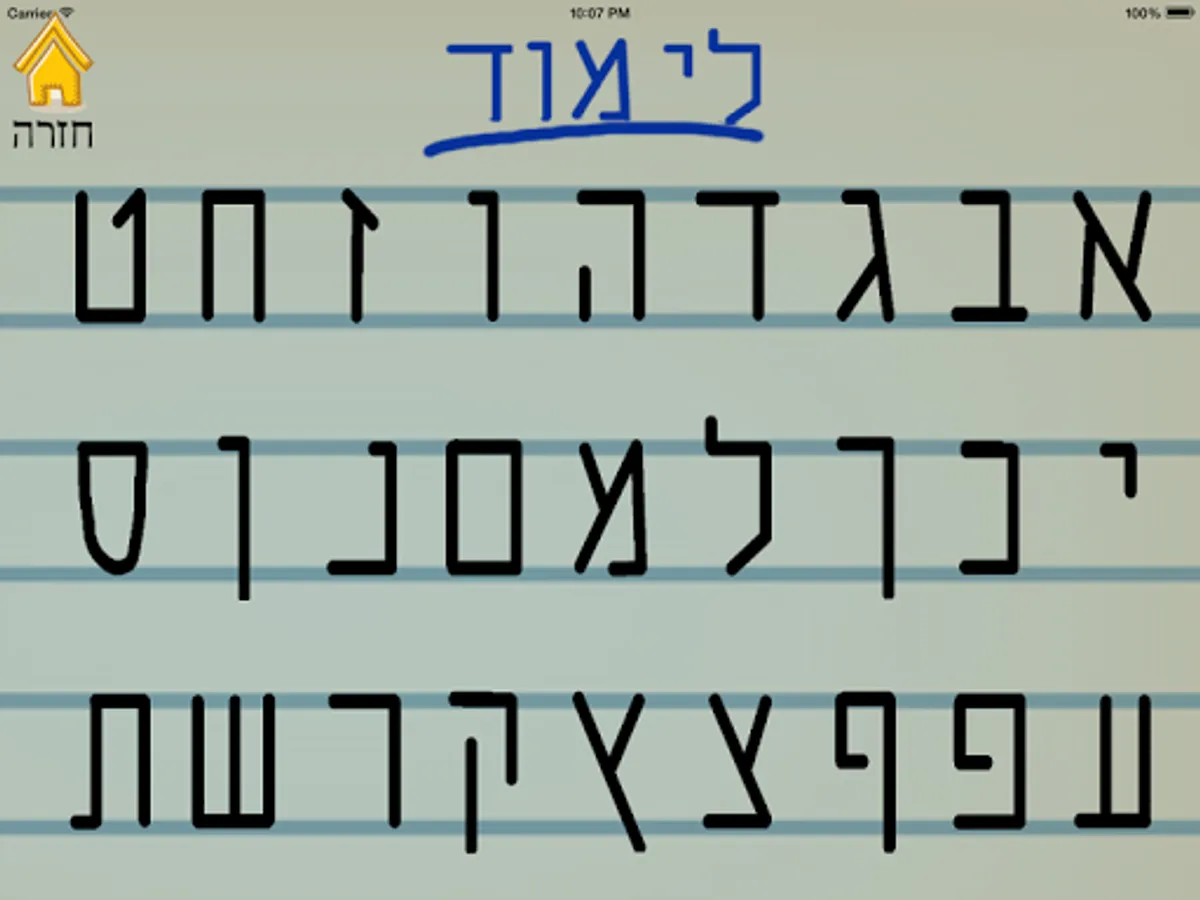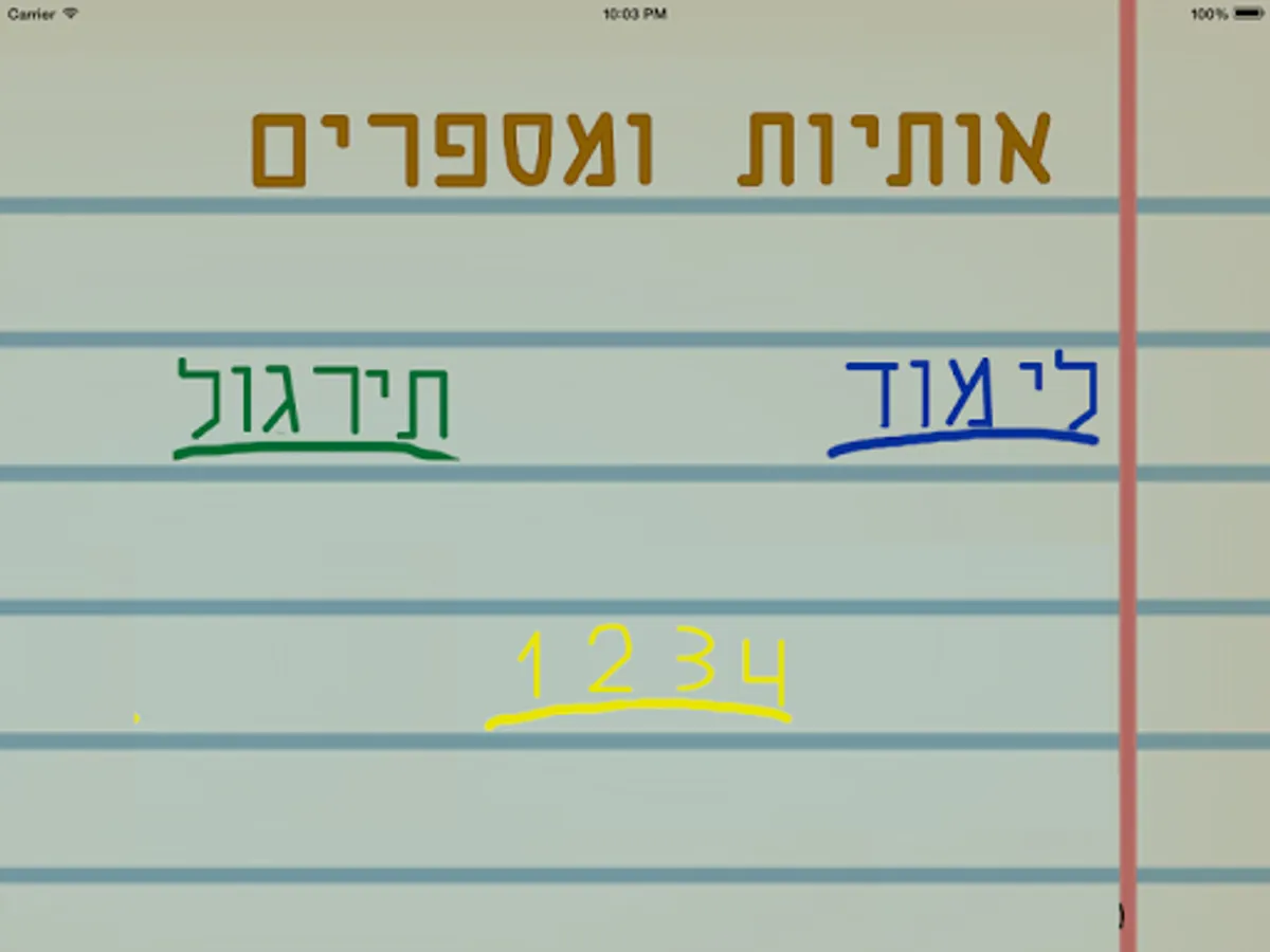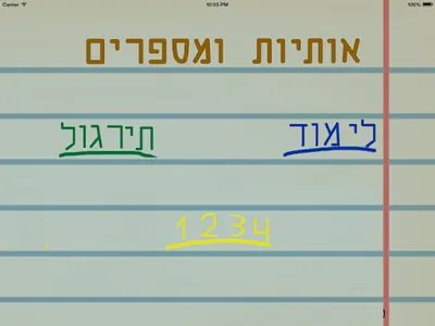 Application for learning letters and numbers in Hebrew