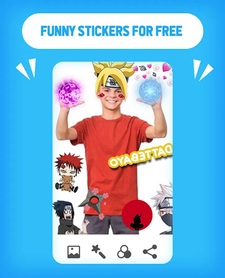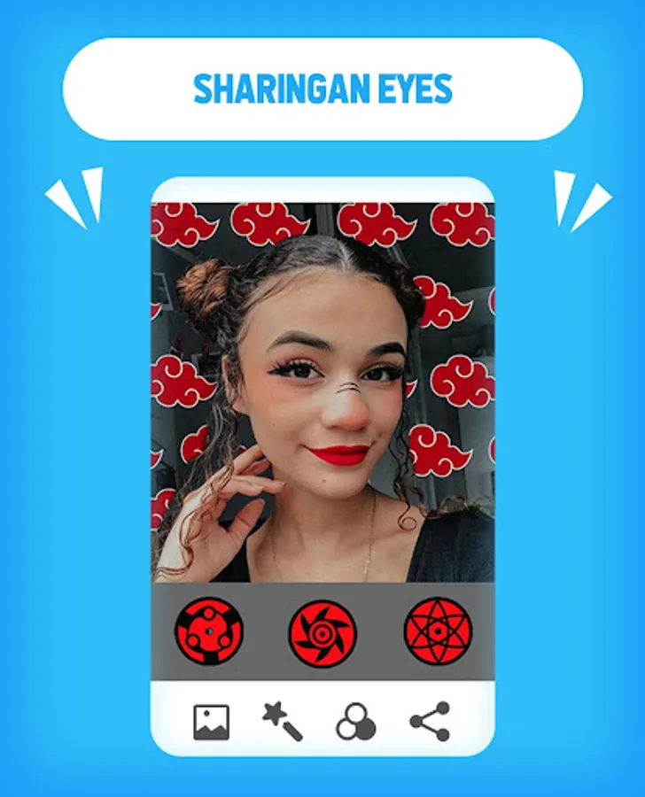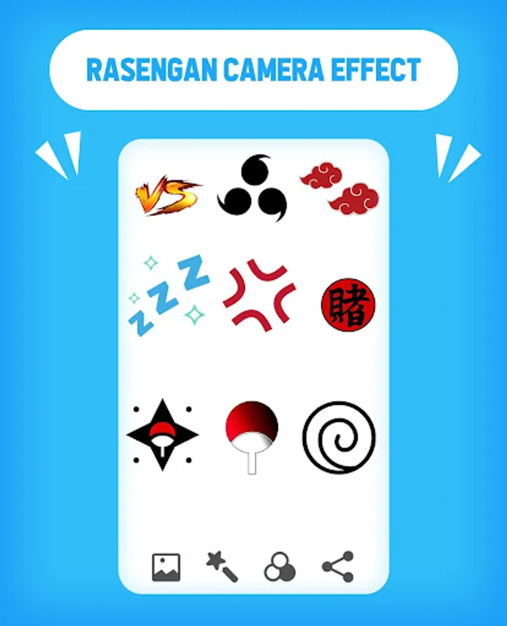 - Edit your pictures by adding effects such as sharingan, or rasengan.