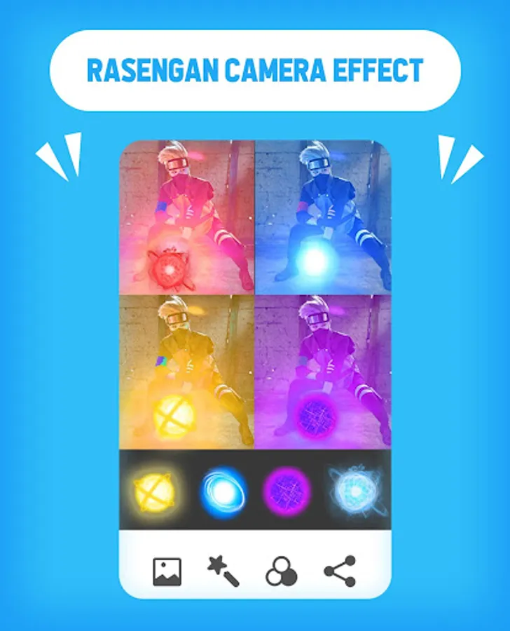 Rasengan Camera Super Powers Effects is also known as Rasengan Photo Editor, make yourself as closely as possible with your idol ninja.