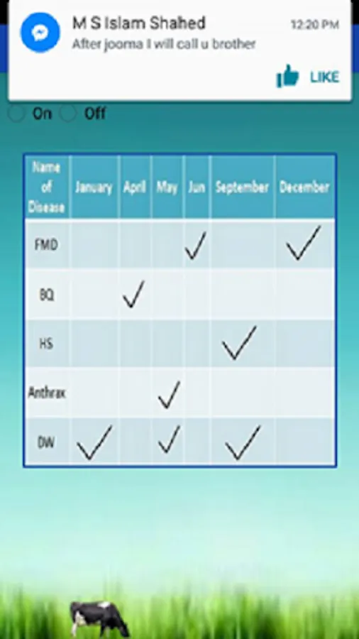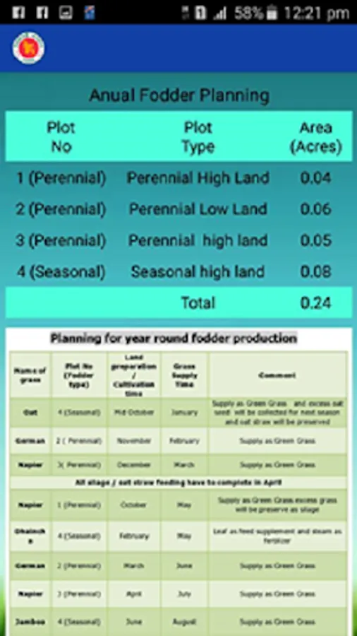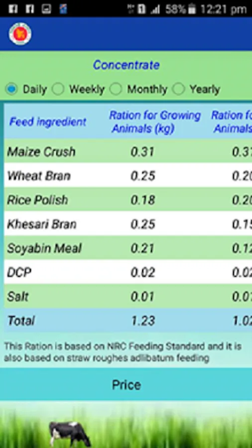 Ration, calculation, vaccination etc. for cattle