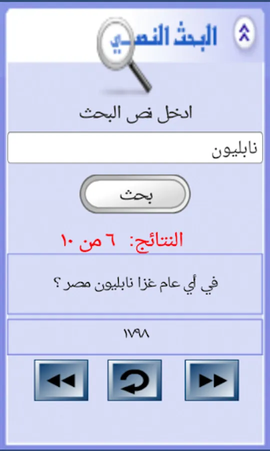 For example, you can write (Napoleon) and search the encyclopedia to show you a lot of information about Napoleon Bonaparte presented in the form of a question and answer includes: the place of birth - the island to which the name - the name of his second wife - the first attempt to housing the Jews in Palestine - broken nose and chin The Statue of the Sphinx - In any year Egypt invaded - how long its campaign on Egypt - how much of the total land it occupied - the battles led to the end of Napoleon - what was his famous title .....