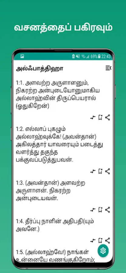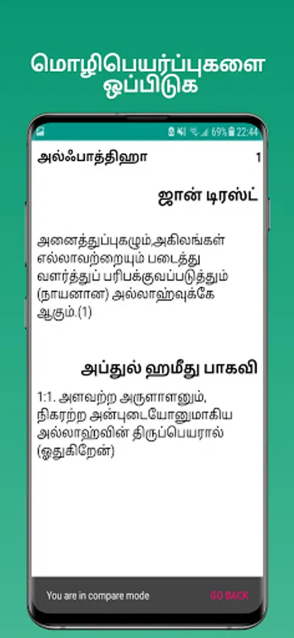 - புனித குர்ஆனின் மொழிபெயர்ப்பை தமிழில் படியுங்கள்.
