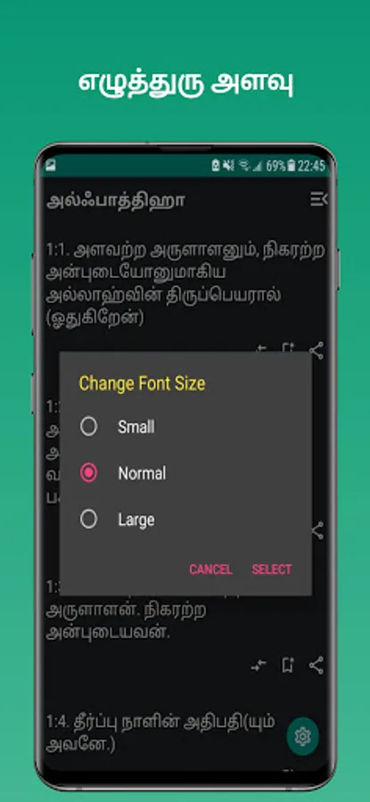 - உங்கள் தேவைகளுக்கு ஏற்ப எழுத்துரு அளவை மாற்றவும்.