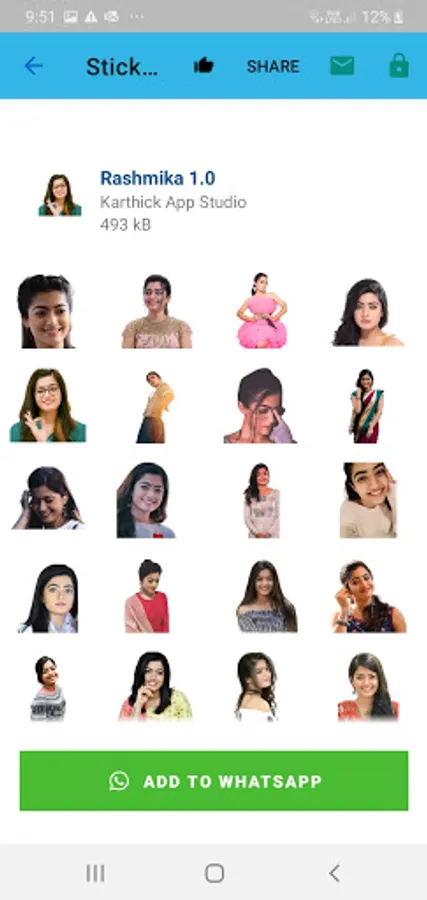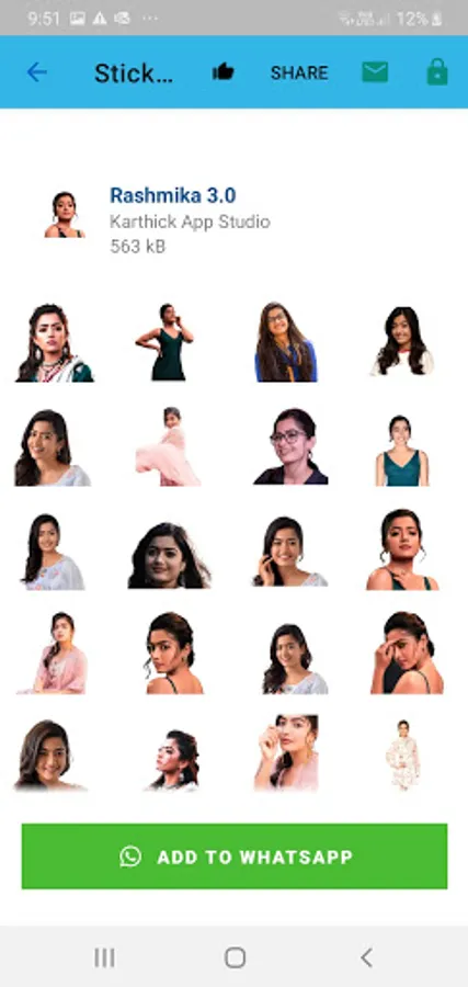 Actress Rashmika Mandanna Stickers app has 300 Tamil heroines Stickers for WhatsApp. Now you can send cool Rashmika Mandanna stickers in your WhatsApp chat with your friends and family. It is a real treat for all the fans of Rashmika Mandanna.