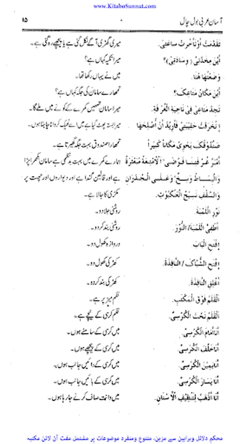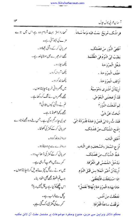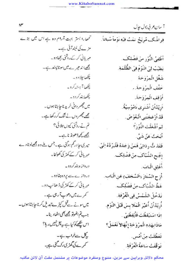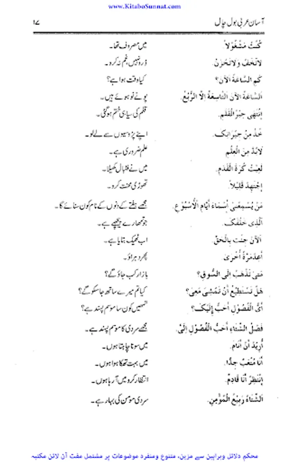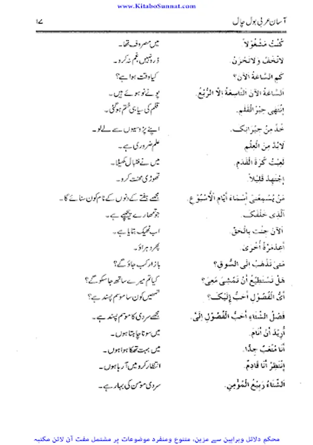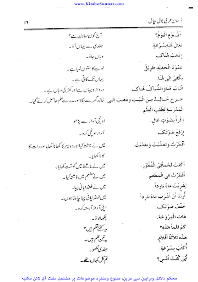 اللہ تعالی کاکلام اور نبی کریم ﷺکی احادیث مبارکہ عربی زبان میں ہیں اسی وجہ سے اسلام اور مسلمانوں سے عربی کا رشتہ مضبوط ومستحکم ہے عربی اسلام کی سرکاری زبان ہے ۔شریعت اسلامی کے بنیادی مآخد اسی زبان میں ہیں لہذا قرآن وسنت اور شریعتِ اسلامیہ پر عبور حاصل کرنےکا واحد ذریعہ عربی زبان ہے۔ اس لحاظ سے عربی سیکھنا اور سکھانا امت مسلمہ کا اولین فریضہ ہے ۔ لیکن مسلمانوں کی اکثریت عربی زبان سے ناواقف ہے جس کی وجہ سے وہ فرمان الٰہی اور فرمان نبوی ﷺ کو سمجھنے سے قاصر ہیں ۔ حتی کہ تعلیم حاصل کرنے والے لوگوں کی اکثریت سکول ،کالجز ،یونیورسٹیوں کے نصاب میں شامل اسلامیات کے اسباق کو بھی بذات خود پڑھنے پڑھانے سے قا صر ہے ۔دنيا كي سب سے بڑی اسلامی مملکت پاکستان دنیا کے نقشے پر اس لیے جلوہ گر ہوئی تھی کہ اس کے ذریعے اسلامی اقدار اور دینی شعائر کا احیاء ہوگا۔ اسلامی تہذیب وثقافت کا بول بالا ہوگا اور قرآن کی زبان سرزمین پاک میں زند ہ وتابندہ ہوگی۔مگر زبان قرآن کی بے بسی وبے کسی کہ ارض پاکستان میں اس مقام پر پہنچ گئی ہے کہ دور غلامی میں بھی نہ پہنچی تھی۔علماء ومدارس کی اپنی حدتک عربی زبان کی نشرواشاعت کے لیے کوششیں وکاوشیں قابل ذکر ہیں۔ لیکن سرکاری طور پر حکومت کی طرف کماحقہ جدوجہد نہیں کی گئی۔ زیر تبصرہ کتاب ’’آسان عربی بول وچال‘‘ مولانا شاہد جاوید کی کاوش ہے اس کتاب میں انہوں نے مدارس عربیہ کے ان طلباء کےلیے جو بالکل ہی مبتدی اورخالی الذہن ہوتے ہیں وہ عربی تکلم کا ذوق تو رکھتے ہیں لیکن وہ اپنے پاس الفاظ کی تعبیر نہ ہونے کی وجہ سے بول نہیں پاتے ۔ فاضل مصنف یہ کتاب ایسے ہی طلباء کی استعداد کو سامنے رکھ کر آسان فہم انداز میں مرتب کی ہے تاکہ اس قسم کے طلباء مدرسہ کی چاردیواری میں رہتے ہوئے مدرسہ کی چوبیس گھنٹے کی زندگی میں استعمال ہونے والے جملے بول کر عربی تکلم پر عبور حاصل کرسکیں مدارس دینیہ میں زیر تعلیم مبتدی طلبہ وطالبات اس کا مطالعہ کر کے آسانی سے عربی زبان بولنے اور سمجھنے کی مہارت حاصل کرسکتے ہیں ۔(م۔ا).
