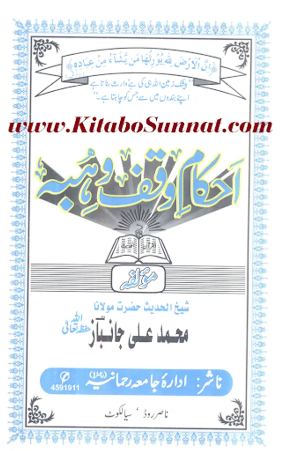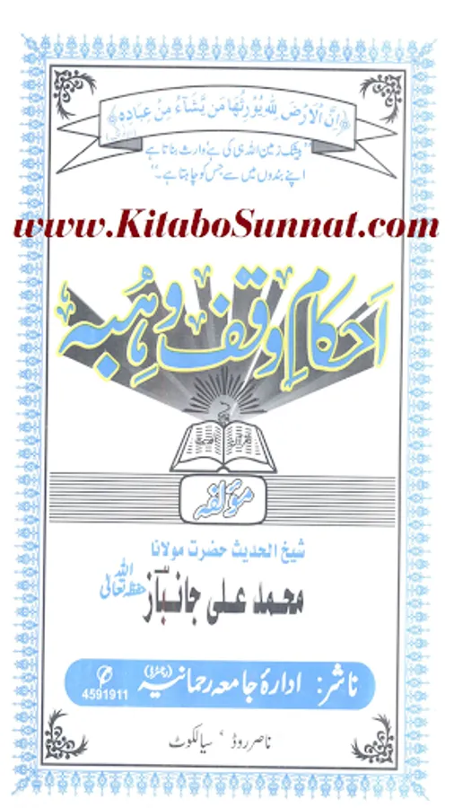 کسی بھی چيز کی اصل کو روک کر رکھنے اور اس میں ہبہ یا وراثت کے تصرف نہ کرنے بلکہ کسی بھی قسم کا تصرف نہ کرنے کو وقف کہا جاتا ہے تاکہ اس چيز کے نفع کو وقف کرنے والے کےارادہ کے مطابق خیر و بھلائی کے کاموں میں صرف کیا جا سکے ۔سب سے بہتر وقف یہ ہے کہ اسے خیر و بھلائی کے کاموں میں وقف کیا جائے۔ اور ہبہ ، ہدیہ اور صدقہ وقف کی ذیلی اقسام ہیں غریبوں اورضرورت مندوں کی مدد کے طریقے ہیں جن کی ترغیب کتاب وسنت میں دلائی گئی ہے ۔ لغوی اعتبار سے اگر کوئی ریئس ، بادشاہ وغیرہ کسی چھوٹے کوکوئی عطیہ دے تواسے ہبہ کہاجاتا ہے جبکہ اگر چھوٹا کسی بڑے کوکچھ نذرکرے تو اسے ہدیہ کہاجاتاہے ۔ اصطلاح میں ہبہ ایک شخص کا دوسرے کوجائیداد منقولہ یا غیرمنقولہ کا فوری اور بلامعاوضہ مالک بنا دینے اورشی موہوبہ کےحق ملکیت سےدستبردار ہونے کا نام ہبہ ہے۔ ہبہ کا لفظ ایک مخصوص اصطلاح فقہ کے طور پر عہدنبوی ہی میں بکثرت استعمال ہونے لگا تھا۔ متاخر عہد فقہاء نےشرح وبسط سےاس کےتفصیلی احکام بیان کیے ہیں ۔ زیر تبصرہ کتاب ’’احکام وقف وہبہ ‘‘شیخ الحدیث مولانامحمد علی جانباز کی تصنیف ہے ۔یہ رسالہ انھوں نے 1987ء میں لاہور ہائیکورٹ کووقف کےمتعلق درپیش معاملہ پر تحریر کی ۔کیونکہ وکلا حصرات نے مولانا سے وقف ،ہبہ کے متعلق کتاب وسنت کی روشنی میں معلومات طلب کی تھیں اور مولاناجانباز نے اس رسالہ میں تین مسائل (وقفہ ، ہبہ ، شفعہ ) متعلق کتاب وسنت کی روشنی میں تفصیلی مواد جمع کر کے وکلا کے سامنےپیش کیا ۔ بعد ازاں اسے کتابی صورت میں بھی شائع کردیا گیا تاکہ عوام الناس اور وکلاء حضرات اس سے مستفید ہوسکیں۔(م۔ا).