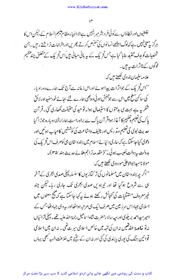 سو لہویں اور سترہویں صدی عیسوی تک تقریبا پورا ہندوستان شرک، بدعات، ہندوانہ رسم و رواج، مشرکانہ زندگی اور تقلید جامد میں بری طرح جکڑا ہوا نظر آتاہے۔ خانقاہی نظام اور ہر خانقاہ کا اپنا جدا مسلک تھا۔کہیں ’’فنا فی الشیخ‘‘ اور کہیں ’’وحدت الوجود‘‘کی تعلیم دی جاتی تھی۔ حاجت روائی کے لئے قبروں پر حاضری اور چلہ کشی عام تھی۔ اسی گورکھ دھندے میں صبح وشام صرف ہوتا تھا۔ لوگ قرآن وسنت سے نا آشنا ہو چکے تھے۔ زیر تبصرہ کتاب’’احناف کی تاریخی غلطیاں‘‘محمد احسن اللہ ڈیانوی عظیم آبادی کی تصنیف کرداہے، مگر وہ اپنی وفات کی وجہ سے اس کو مکمل نہ کرسکے جو بعدمیں ان کے فر زندے رشید عزیزی محمدسلمہ اللہ نے اس نا مکمل تصنیف کی تکمیل کی، گوکہ اس موضوع پر اب تک متعدد کتابیں لکھی جاچکی ہیں، مگر بالخصوص یہ کتاب اپنے موضوع پر لکھی گی گزشتہ کتابوں سے ذرا مختلف ومنفرد ہے، اور اس کتاب کا موضوع محققین احناف کی تاریخی غلطیوں سے متعلق ہے، جن میں زیادہ تر غلطیاں سیدین شہیدین کی تحریک جہاد سے متعلق ہے ہیں۔ جب کہ چند ایک دوسرے موضوعات کو بھی اس میں شامل کیا گیا ہے، اور ان کا حقیقت پر مبنی تسلی بخش جوابات دیے گئے ہیں۔ اللہ رب العزت سے دعا کرتے ہیں کہ اللہ فاضل مصنف کو اس کار خیر پر اجرے عظیم سے نوازے۔ آمین(شعیب خان).