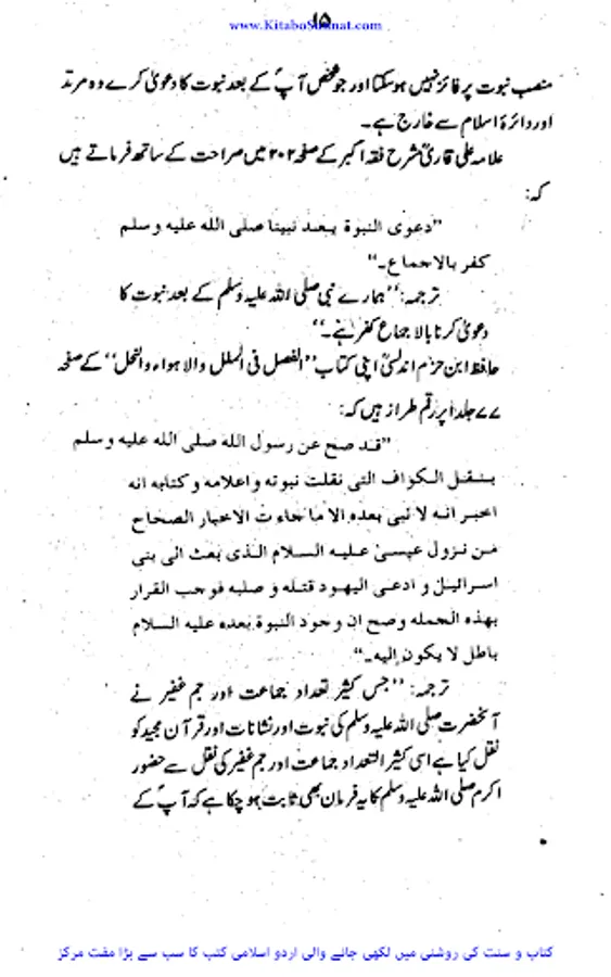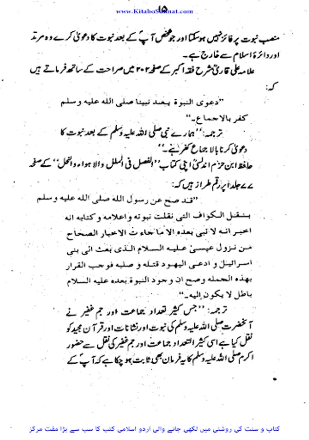 اسلام کے بنیادی ترین عقائد میں سے ایک عقیدہ، عقیدہ ختم نبوت کا ہے ،جس پر ہر مسلمان کا ایمان لانا واجبات میں سے ہے،اور اس عقیدہ کا انکا رکرنے والا خارج عن الاسلام ہے، اور امام اعظم امام ابو حنیفہ ؒ کا تو یہ فتویٰ ہے کہ حضور خاتم الانبیاء کے بعد مدعی نبوت سے دلیل طلب کرنا یا معجزہ مانگنا بھی کفر ہے۔ اس سے عقیدہ ختم نبوت کی اہمیت کا اندازہ ہوتا ہے۔ مدعی نبوت پر ایمان لانا تو کجا اس سے دلیل طلب کرنا کفر قرار دیا گیا ہے۔ خلیفہ اول حضرت ابو بکر صدیق نے عقیدہ ختم نبوت کے تحفظ کیلئے جو عظیم قربانی دی وہ تاریخ کے صفحات میں موجود ہے۔ حضرت ابو بکر صدیق اور جمیع صحابہ کرام کی نظر میں عقیدہ ختم نبوت کے تحفظ کی جو اہمیت تھی اس کا اس بات سے بخوبی اندازہ لگایا جاسکتا ہے کہ مدعی نبوت مسیلمہ کذاب سے جو معرکہ ہوا اس میں بائیس ہزار مرتدین قتل ہوئے اور 1200 کے قریب صحابہ کرام نے جام شہادت نوش فرمایا جس میں600 کے قریب تو حفاظ اور قراءتھے۔ اس موقع پرصحابہ کرام نے جانوں کا نذرانہ تو پیش کر دیا مگر اس عقیدہ پر آنچ نہ آنے دی۔قرآن کریم نے بھی بہت وضاحت اور صفائی کے ساتھ بتایا ہے کہ حضرت محمد ﷺ اللہ کے آخری نبی ہیں اور احادیث مقدسہ نے بھی اس کی تصریح کی ہے بلکہ قرآن کریم و احادیث میں جس کثرت اور تواتر و قطعیت کے ساتھ عقیدختم نبوت کو بیان کیا گیا ہے‘ اس کی نظیر بہت کم ملے گی۔خود آنحضرت ﷺنے اپنے آخری دور میں سب سے پہلے جھوٹے مدعیان نبوت کا خاتمہ کرکے امت کے سامنے اس کام کا عملی نمونہ پیش کیا چنانچہ یمن میں ایک شخص جس کو اسود عنسی کہاجاتا تھا، نے سب سے پہلے ختم نبوت سے بغاوت کرکے اپنی نبوت کا جھوٹا دعویٰ کیا، اس کے جواب میں آنحضرت ﷺنے اہل یمن کو اس سے قتال وجہاد کا باقاعدہ تحریری حکم صادر فرمایا اور بالآخر حضرت فیروز دیلمی کے خنجر نے نبوت کے اس جھوٹے دعویداری کا آخری فیصلہ سنادیا۔ زیر تبصرہ کتاب ’’آئینہ قادیانیت‘‘مناظر ختم نبوت اللہ وسا یا صاحب کی تصنیف کردا ہے جس میں ان ہوں نے فتنہ قادیانیت سے متعلق تیس سوالات کے جوابات دیے ہیں اور فرقہ قادیانیت کی حقیقت کو واضح کیا ہے۔ اللہ رب العزت سے دعا کرتے ہیں کہ اللہ ان کو اس کار خیر پر اجرے عظیم سے نوازے۔ آمین(شعیب خان).