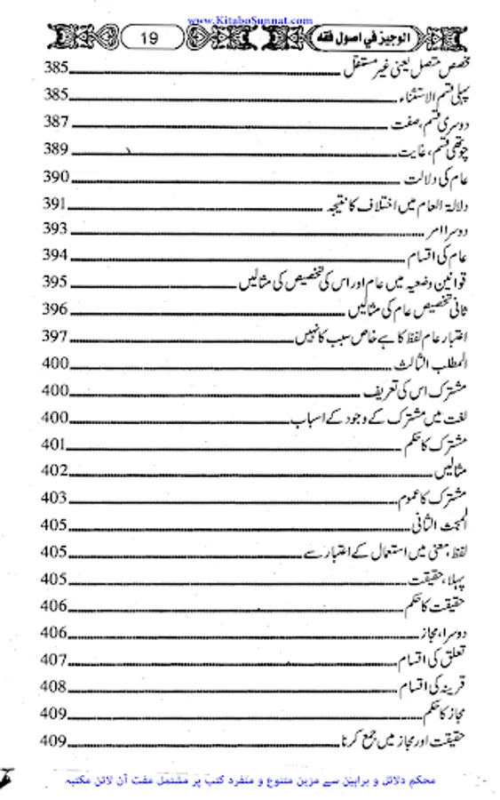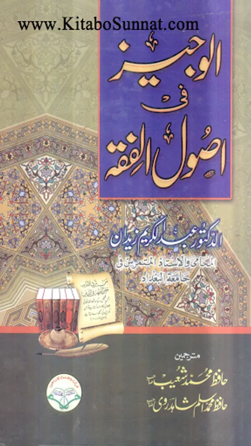 وہ علم جس میں احکام کے مصادر ،ان کے دلائل کے، استدلال کے مراتب اور استدلال کی شرائط سے بحث کی جائے او راستنباط کے طریقوں کووضع کر کے معین قواعد کا استخراج کیا جائے کہ جن قواعد کی پابندی کرتے ہوئے مجتہد تفصیلی دلائل سے احکام معلوم کرے، اس علم کا نام اصول فقہ ہے۔ علامہ ابن خلدون کے بقول اس وجہ سے یہ علم علوم شریعت میں سے سب سے عظیم، مرتبے میں سب سے بلند اور فائدے کے اعتبار سے سب سے زیادہ معتبرہے (مقدمہ ابن خلدون ص: 452) جس طرح کسی بھی زبان کو جاننے کےلیے اس زبان کے قواعد و اصول کو سمجھنا ضروری ہے اسی طر ح فقہ میں مہارت حاصل کرنےکے لیے اصول فقہ میں دسترس اور اس پر عبور حاصل کرناضروری ہے اس علم کی اہمیت کے پیش نظر ائمہ فقہاء و محدثین نے اس موضوع پر کئی کتب تصنیف کی ہیں اولاً امام شافعی نے الرسالہ کے نام سے کتاب تحریرکی پھر اس کی روشنی میں دیگر اہل علم نے کتب مرتب کیں۔ اصول فقہ کی تاریخ میں بیسویں صدی کو خصوصی اہمیت حاصل ہے۔ اس دور میں علم اصول فقہ نےایک نئی اٹھان لی اوراس پر کئی جہتوں سے کام کاآغاز ہوا: مثلاً اصول کاتقابلی مطالعہ، راجح مرجوح کاتعین اور مختلف کتب میں بکھری مباحث کو یک جا پیش کرنےکے ساتھ ساتھ موجودہ قانونی اسلوب اور سہل زبان میں پیش کرناوغیرہ ۔اس میدان میں کام کرنے والے اہل علم میں ایک نمایاں نام ڈاکٹر عبد الکریم زیدان کا بھی ہے۔ اصول فقہ پران کی مایۂ کتاب ’’الوجیز فی اصول الفقہ‘‘ اسی اسلوب کی نمائندہ کتاب ہے اور اکثر مدارس دینیہ میں شامل نصاب ہے۔ زیر نظر کتاب ’’الوجیز فی اصول الفقہ‘‘ سید عبدالکریم زیدا ن کی اصول فقہ کے موضوع پر جامع عربی کتاب کا ترجمہ ہے۔ فاضل مصنف نے اس کتاب کو چارابو اب میں تقسیم کرکے مثالوں کے ساتھ تفصیلی مباحث پیش کی ہیں۔ باب اول :حکم کی مباحث۔ باب دوم: احکام کے دلائل کی بحث میں۔ باب ثالث: احکام کے استنباط کے طریقہ اور قواعد اور ان کے ساتھ ملحق قواعد ترجیح اور ناسخ ومنسوخ۔ باب چہارم: اجتہاد او راس کی شرائط ،مجتہد،تقلید اور اس کے تعریف کے متعلق ہے۔ مصنف نے اس میں ہر مسئلے کے بارے میں بنیادی اوراہم اصول اختصار و جامعیت کے ساتھ بیان کیے ہیں۔ اس کتاب کی بڑی خصوصیت یہ ہے کہ مؤلف نے کسی ایک مکتب فکر کے اصول پیش نہیں کیے اور نہ کسی خاص مکتب فقہ کی تقلید وحمایت کی ہے۔ اختلافی مسائل میں مصنف نے مختلف آراء کا محاکمہ کیا ہے اور آخر میں اپنی رائے پیش کی ہے۔ عربی کتاب کو اردو قالب میں ڈھالنے کا کام محترم جناب حافظ شعیب مدنی﷾ (فاضل مدینہ یونیورسٹی) اور مولانا حافظ اسلم شاہدروی﷾ کی مشترکہ کاوش ہے۔ اس ترجمہ کی خصوصیت یہ ہے کہ اس میں مصنف کتاب کی طرف سے اضافہ کی گئی فصل کا ترجمہ بھی شامل کردیاگیا ہے۔ جبکہ دیگر تراجم میں یہ اضافہ شامل نہیں ہے نیز مترجمین نے چند مقامات پر توضیحی.