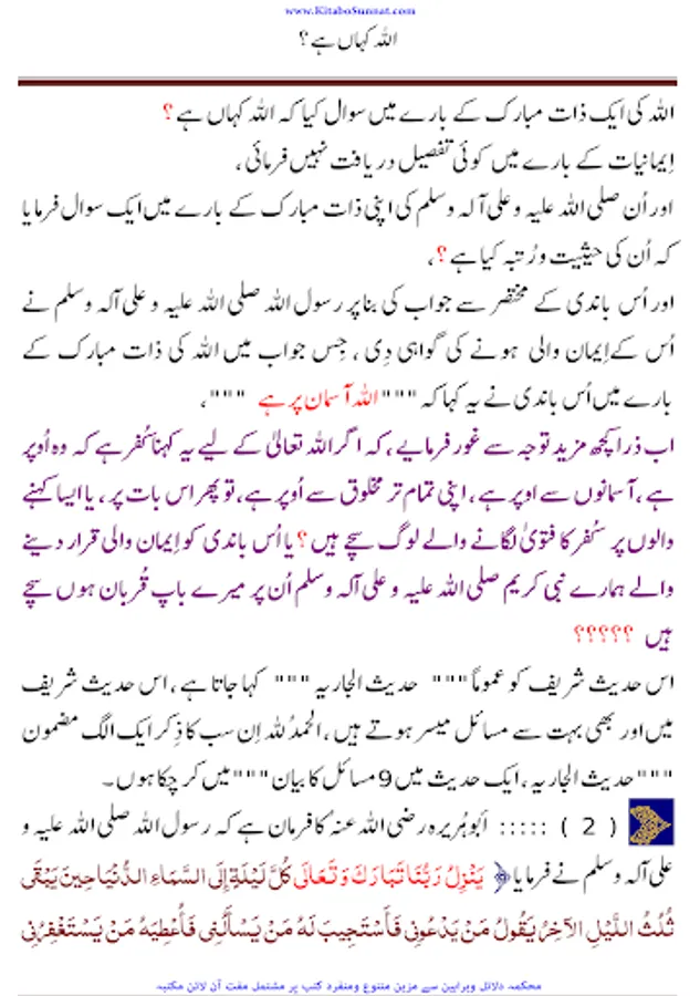 اللہ کہاں ہے؟ کتاب کا مذکورہ بالا عنوان محض ایک سوال نہیں بلکہ اسلامی عقائد میں سے ایک اہم ترین عقیدہ ہے،جو براہ راست اللہ تبارک وتعالی کی ذات مبارک سے متعلق ہے،دیگر بہت سے عقائد کی طرح اس عقیدے میں بھی ایسی بات کو اپنایا جاچکا ہے اور اس کی تشہیر و ترویج کی جاتی ہے جو بات قرآن کریم ، رسول اللہ ﷺ، صحابہ کرام رضوان اللہ علیہم اجمعین ، تابعین، تبع تابعین اور امت کے آئمہ رحمہم اللہ اجمعین کی تعلیمات کے خلاف ہے۔اس کتاب میں اسی غلطی کو واضح کیا گیا ہے۔وللہ الحمد۔(ک۔ح).