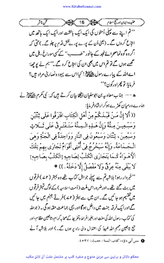توحید دین کی اساس ہے باقی سب چیزیں وسائل توحید ہیں ۔ توحید کے بغیر انسان کی پہنچان ہی نہیں ہوتی۔ توحید نے انسان کو حقیقی شعور بخشا ہے ۔ زمین پر کوئی بھی مخلوق ایسی نہیں جوتوحید پرست نہ ہو۔ ایک انسان ایسی مخلوق ہے جو توحید اور شرک کےدرمیان رہتا ہے سوائے انبیاء کے جو توحید والے ہوتے ہیں اور توحید کی طرف بلاتے ہیں۔اخروی نجات ہر مسلمان کا مقصد زندگی ہے جو صرف اور صرف توحید خالص پرعمل پیرا ہونے سے پورا ہوسکتا ہے۔ جبکہ مشرکانہ عقائد واعمال انسان کو تباہی کی راہ پر ڈالتے ہیں جیسا کہ قرآن کریم نے مشرکوں کے لیے وعید سنائی ہے ’’ اللہ تعالیٰ شرک کو ہرگز معاف نہیں کرے گا او اس کے سوا جسے چاہے معاف کردے گا۔‘‘ (النساء:48) لہذا شرک کی الائشوں سے بچنا ایک مسلمان کے لیے ضروری ہے ۔اس کے بغیر آخرت کی نجات ممکن ہی نہیں ۔ حضرت نوح نے ساڑے نوسوسال کلمۂ توحید کی طرف لوگوں کودعوت دی ۔ اور اللہ کے آخری رسول سید الانبیاء خاتم النبین حضرت محمد مصطفیٰ ﷺ نےبھی عقید ۂ توحید کی دعوت کے لیے کس قدر محنت کی اور اس فریضہ کو سر انجام دیا کہ جس کے بدلے آپ ﷺ کو طرح طرح کی تکالیف ومصائب سے دوچار ہوناپڑا۔ عقیدہ توحید کی تعلیم وتفہیم کے لیے جہاں نبی کریم ﷺ او رآپ کے صحابہ کرا م نے بے شمار قربانیاں دیں اور تکالیف کو برداشت کیا وہاں علمائے اسلام نےبھی عوام الناس کوتوحید اور شرک کی حقیقت سےآشنا کرنے کےلیے دن رات اپنی تحریروں اور تقریروں میں اس کی اہمیت کو خوب واضح کیا ۔ہنوز یہ سلسلہ جاری وساری ہے۔ زیر تبصرہ کتاب’’ عقیدہ ایمان او رمنہج اسلام ‘‘شیخ عبدللہ بن عبد الحمید الاثری﷾ کی عقیدہ توحید کے موضوع پر بہترین جامع عربی تصنیف ’’الوجیز فی عقیدۃ السلف الصالح‘‘ کا سلیس اردو ترجمہ ہے۔یہ کتاب سلف صالحین اہل السنہ والجماعۃ کے عقیدہ کامختصر اور جامع بیان ہے۔فاضل مؤلف نے اس میں بہت مفید ومضبوط معلومات جمع کی ہیں۔ ہربات کی تائید کےلیے دلیل کا التزام کیا ہے ۔اورتوحید کی تمام اقسام ، ایمان اور قضاء وقدر کے بارے میں علماء اہل السنۃ والحدیث کے اقوال کا مکمل ذکر موجود ہے ۔انہوں نے ہے سلف صالحین کے عقیدہ کو ایسی وسعت کے ساتھ بیان کیا ہے کہ ہر مسلمان آدمی اسے آسانی سے پڑھ کر اس موضوع کی مختلف تحقیقی باتوں پر مطلع ہو سکتا ہے۔ اس اہم مفید کتاب کاترجمہ متعدد ضخیم کتب کے مصنف ومترجم ابو یحیٰ محمد زکریا زاہد ﷾ نے اپنی فنی مہارت کے ساتھ اس انداز میں کیا ہے کہ یہ ترجمہ اصل تصنیف معلوم ہوتی ہے ۔ترجمہ بامحاورہ ہونے کے ساتھ ساتھ آسان فہم اوراردو ادب کی چاشنی سے یوں لبریز ہےکہ پڑھنے والے کا دل کرتا ہے کتاب شروع کرے تو مکمل کر کے ہی دم لے ۔اللہ تعالیٰ اس کتاب کو اہل ایمان کی اصلاح کا ذریعہ بنائے اور مصنف،مترجم وناشرین کی خدمات کو قبول فرمائے (آمین) (م۔ا).