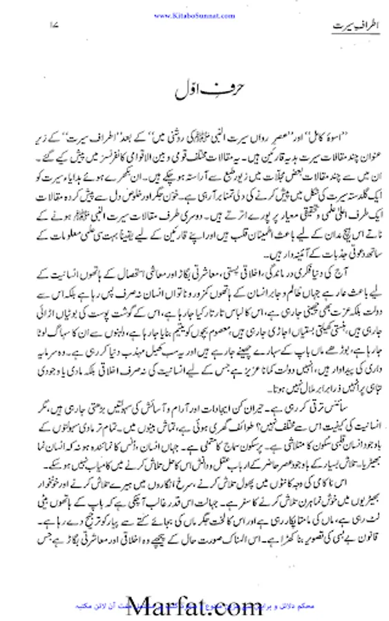 اس روئے ارض پر انسانی ہدایت کے لیے حق تعالیٰ نے جن برگزیدہ بندوں کو منتخب فرمایا ہم انہیں انبیاء و رسل کی مقدس اصطلاح سے یاد رکرتے ہیں اس کائنات کے انسانِ اول اور پیغمبرِاول ایک ہی شخصیت حضرت آدم کی صورت میں فریضۂ ہدایت کے لیے مبعوث ہوئے۔ اور پھر یہ کاروانِ رسالت مختلف صدیوں اور مختلف علاقوں میں انسانی ہدایت کے فریضے ادا کرتے ہوئے پاکیزہ سیرتوں کی ایک کہکشاں ہمارے سامنے منور کردیتاہے۔ درخشندگی اور تابندگی کے اس ماحول میں ایک شخصیت خورشید جہاں تاب کی صورت میں زمانےاور زمین کی ظلمتوں کو مٹانے اورانسان کے لیے ہدایت کا آخری پیغام لے کر مبعوث ہوئی جسے محمد رسول اللہ ﷺ کہتے ہیں۔ آج انسانیت کےپاس آسمانی ہدایت کا یہی ایک نمونہ باقی ہے۔ جسے قرآن مجید نےاسوۂ حسنہ قراردیا اور اس اسوۂ حسنہ کےحامل کی سیرت سراج منیر بن کر ظلمت کدۂ عالم میں روشنی پھیلارہی ہے۔ رہبر انسانیت سیدنا محمد رسول اللہ ﷺ قیامت تک آنے والےانسانوں کےلیے’’اسوۂحسنہ‘‘ ہیں۔ حضرت محمد ﷺ ہی اللہ تعالیٰ کے بعد، وہ کامل ترین ہستی ہیں جن کی زندگی اپنے اندر عالمِ انسانیت کی مکمل رہنمائی کا پور سامان رکھتی ہے۔ گزشتہ چودہ صدیوں میں اس ہادئ کامل ﷺ کی سیرت وصورت پر ہزاروں کتابیں اورلاکھوں مضامین لکھے جا چکے ہیں۔ اورکئی ادارے صرف سیرت نگاری پر کام کرنے کےلیےمعرض وجود میں آئے۔ اور پورے عالمِ اسلام میں سیرت النبی ﷺ کے مختلف گوشوں پر سالانہ کانفرنسوں اور سیمینار کا انعقاد بھی کیا جاتاہے جس میں مختلف اہل علم اپنے تحریری مقالات پیش کرتے ہیں۔ ہنوذ یہ سلسلہ جاری وساری ہے۔ زیر تبصرہ کتاب ’’اطراف سیرت‘‘ وطن عزیز پاکستان کی معروف شخصیت مصنف ومرتب کتب کثیرہ جناب پرو فیسر ڈاکٹر عبد الرؤف ظفر﷾ (سابق چئیرمین شعبہ علوم اسلامیہ بہاولپور یونیورسٹی، و سرگودہا یونیورسٹی) کی سیرت النبیﷺپر یہ تیسری تصنیف ہے ۔اس کےعلاوہ ان کے بیسیوں مضامین برصغیر پاک و ہند کے رسائل وجرائد میں شائع ہوچکے ہیں۔ ڈاکٹر صاحب نے اس کتاب کو پانچ ابو اب میں تقسیم کر کے سیرت کے مختلف پہلوؤں کااحاطہ کیا ہے۔ باب اول سیرت النبی ﷺ ایک تعارف ، باب دوم سیرت النبیﷺ اور فکری وفقہی مسائل، باب سوم سیرت النبی ﷺاور شخصیات، باب چہارم سیرت النبیﷺ تاریخ وارتقاء اور پانچواں باب کتب سیرت کےتعارف کے متعلق ہے۔ اس کتاب میں شامل بعض مقالات ایسے ہیں جو ڈاکٹر صاحب مختلف قومی وبین الاقوامی کانفرنسز میں مختلف اوقات میں پیش کرچکے ہیں۔ موصوف ان دنوں سرگودہا یونیورسٹی کےلاہور کیمپس میں اپنی خدمات انجام دے رہیں۔ اللہ تعالیٰ ان کی تمام مساعی جمیلہ کو قبول فرمائے۔ (م۔ا).