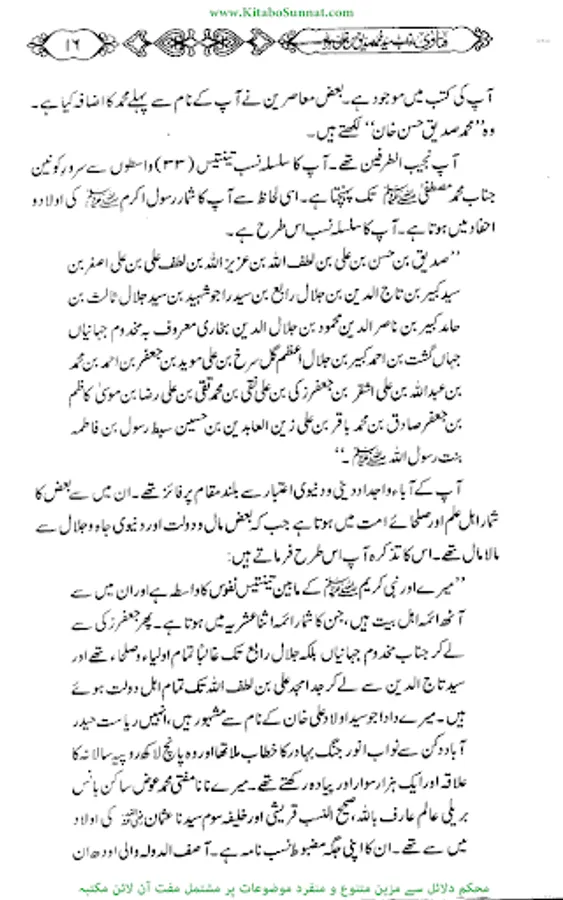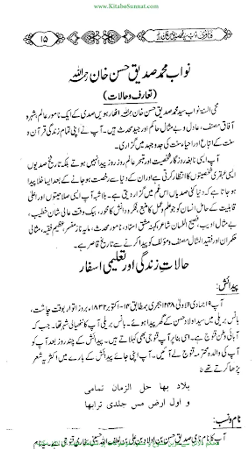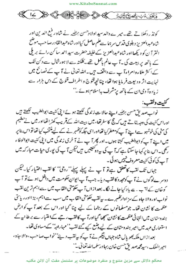 برصغیر میں علومِ اسلامیہ،خدمت ِقرآن اور عقیدہ سلف کی نصرت واشاعت کےسلسلے میں نواب صدیق حسن خاں (1832۔1890ء) صدیق حسن خان قنوجی ؒ کی ذات والا صفات کسی تعارف کی محتاج نہیں ۔ علامہ مفتی صدر الدین ، شیخ عبد الحق محدث بنارسی ، شیخ قاضی حسین بن محسن انصاری خزرجی ۔ شیخ یحیی بن محمد الحازمی ، قاضی عدن ، علامہ سید خیر الدین آلوسی زادہ جیسے اعلام اور اعیان سے کسب ِفیض کیا۔آپ کی مساعی جمیلہ روزِروشن کی طرح عیاں ہیں ۔ عربی ، فارسی ، اردو تینوں زبانوں میں دو سو سے زائد کتابیں تصنیف کیں او ردوسرے علماء کو بھی تصنیف وتالیف کی طرف متوجہ کیا،ان کے لیے خصوصی وظائف کا بندوبست کیا او راسلامی علوم وفنون کے اصل مصادر ومآخذ کی از سرنو طباعت واشاعت کاوسیع اہتمام کیا۔نواب محمدصدیق حسن خان نے علوم ِاسلامیہ کے تقریبا تمام گوشوں سے متعلق مستقل تالیفات رقم کی ہیں اور شاید ہی کوئی ایسا دینی وعلمی موضوع ہو جس پر نواب صاحب نے کوئی مستقبل رسالہ یا کتاب نہ لکھی ہو۔حدیث پاک کی ترویج کا ایک انوکھا طریقہ یہ اختیار فرمایا کہ کتب ِاحادیث کے حفظ کا اعلان کیا۔ اوراس پرمعقول انعام مقرر کیا۔ چنانچہ صحیح بخاری کے حفظ کرنے پر ایک ہزار روپیہ اور بلوغ المرام کے کے حفظ کرنے ایک سو روپیہ انعام مقرر کیا۔ جہاں نواب صاحب نے خود حدیث اور اس کے متعلقات پر بیش قیمت کتابیں تصنیف کیں وہاں متقدمین کی کتابیں بصرف کثیر چھپوا کر قدردانوں تک مفت پہنچائیں۔دوسری طرف صحاح ستہ بشمول موطا امام مالک کے اردو تراجم و شروح لکھوا کر شائع کرانے کا بھی اہتمام کیا۔ تاکہ عوام براہ راست علوم سنت سے فیض یاب ہوں۔ زیر تبصرہ کتاب’’ فتاوی نواب محمد صدیق خان القنوجی ‘‘ نواب صاحب کی تالیف کردہ کتب فقہ میں سے اخذشدہ ہے ۔یہ فتاوی اس سے پہلے بھی شائع ہوا تھا یہ ایڈیشن اسی کاطبع جدید ہے ۔ محترم جنا ب اشرف جاوید ﷾ نے اسے نئے انداز سےمرتب کیا اور اس کے اس کے تحقیقی حواشی بھی تحریر کیے ہیں ۔فتوی نویسی کی تاریخ ، عہد صحابہ سے عصر حاضر تک کے معروف مفتیان اور کتب فتاوی کا تعارف مقدمے کی صورت میں تحریر کیا ہے ۔ اور مولانا حبیب الرحمٰن خلیق نے اس کی تسہیل کا فریضہ انجام دیا ہے جس سےاس فتاویٰ کی افادیت میں مزید اضافہ ہوگیا ہے اور اس سے قارئین آسانی سے استفادہ کرسکتے ہیں ۔ (م۔ا).