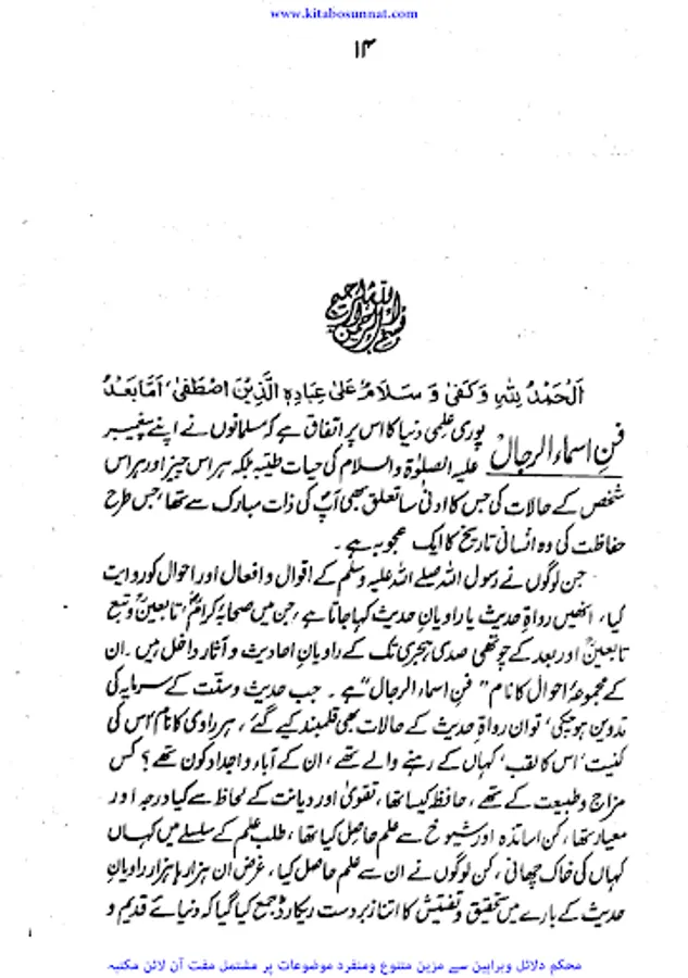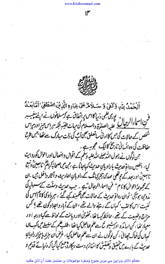 علم اسماء الرجال راویانِ حدیث کی سوانحِ عمری اورتاریخ ہے، اس میں راویوں کے نام، حسب ونسب، قوم ووطن، علم وفضل، دیانت وتقویٰ، ذکاوت وحفظ، قوت وضعف اور ان کی ولادت وغیرہ کا بیان ہوتا ہے، بغیراس علم کے حدیث کی جانچ مشکل ہےراویوں کے حالات اور ان کے متعلق جرح و تعدیل کے سلسلہ میں جو کتابیں لکھی گئیں انہیں کتب اسماءالرجال کہتے ہیں۔ ان کتابوں سے راویوں کے حالات, ان کی تاریخ پیدائش اور تاریخ وفات, ان کے شیوخ اور تلامذہ, ان کے متعلق ائمہ کی جرح و تعدیل, ان کے عقائد وغیرہ کا علم ہوتا ہے۔ ان کتابوں سے یہ نتیجہ نکالا جا سکتا ہے کہ کونسا راوی ثقہ تھا اور کونسا ضعیف۔ائمہ محدثین نے اس فن پر متعدد کتابیں لکھی ہیں۔ زیر نظر کتاب’’فن اسماء الرجال ائمہ حدیث کاعظیم الشان کارنامہ‘‘ڈاکٹر تقی الدین ندوی مظاہری صاحب کی تصنیف ہے۔یہ کتاب فنِّ اسماء الرجال ، جرح وتعدیل اور اس کے متعلقات کے تعارف اوراصول وضابطے کے بیان پر مشتمل ہے ۔آخری باب میں اس فن کی ااہم و مشہور کتابوں کااجمالی تعارف بھی اور ان کےمطبوع ومحفوظ ہونے کی نشاندہی بھی ہے ۔اس کتاب میں سید ابوالحسن ندوی کا علمی مقدمہ انتہائی اہم ہے فاضل مصنف نےیہ کتاب تقریباً53 ؍سال قبل تصنیف کی موصوف نے اس کےکتاب کے علاوہ اسی موضوع سےمتلق ایک شاندار کتاب بعنوان’’ محدثین عظام اوران کےعلمی کارنامے ‘‘ بھی تصنیف کی یہ کتاب بھی کتاب وسنت سائٹ پر موجود ہے ۔(م۔ا).