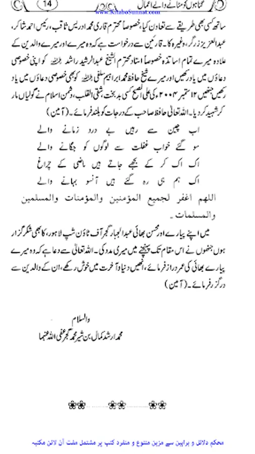انسان کی خصلت ہے کہ وہ نسیان سے محفوظ نہیں رہ سکتا۔ اس کے تحت وہ دانستہ یا نادانستہ گناہ کر بیٹھتا ہے۔ بہترین انسان وہ ہے جسے گناہ کے بعد یہ احساس ہو جائے کہ اس سے غلطی ہوگئی ہے۔ اگر اس نے توبہ نہ کی تویہ غلطی اس کے خالق و مالک کو اس سے ناراض کردے گی۔ اس سےاپنے معبود ومالک کی ناراضگی کسی صورت بھی برداشت نہیں ہوتی۔ اسی لیے وہ فوری طور پر اللہ کریم کے دربار میں حاضر ہو کر گڑگڑاتا ہے اور وہ آئندہ ایسے گناہ نہ کرنے کا پکا عزم کرتے ہوئے توبہ کرتا ہے کہ اے مالک الملک اس مرتبہ معاف کردے آئندہ میں ایسا کبھی نہ کروں گا۔ گناہ کے بعد ایسے احساسات اور پھر توبہ کے لیے پشیمانی وندامت پر مبنی یہ عمل ایک خوش نصیب انسان کےحصہ میں آتا ہے۔ جب کہ اس جہاںمیں کئی ایسے بدنصیب سیاہ کار بھی ہیں جن کوزندگی بھر یہ احساس نہیں ہوتا کہ ان کا مالک ان سے ناراض ہو چکا ہے اور وہ ہیں کہ دن رات گناہ کرتے چلے جاتے ہیں اور رات کوگہری نیند سوتے ہیں یا مزید گناہوں پر مبنی اعمال میں مصروف رہ کر گزار دیتے ہیں۔جبکہ اللہ کریم اس وقت پہلے آسمان پر آکر دنیا والوں کو آواز دیتا ہے کہ: اے دنیا والو! ہے کوئی جو مجھ سے اپنے گناہوں کی مغفرت طلب کرے... ہے کوئی توبہ کرنے والا میں اسے ا پنی رحمت سے بخش دوں...؟ بہت کم ایسے خوش نصیب ہیں کہ جن کو مرنے سے قبل توبہ کی توفیق نصیب ہوتی ہے اور وہ گناہوں بھر زندگی سےتائب ہوکر ہدایت کوروشن شاہراہ پر سفر کرتے ہیں، پھر شیطان لعین اورانسا ن نما شیاطین کےحملوں سےبچ کر باقی زندگی گزارتے ہیں۔ اور یوں اللہ کریم کو خوش کرنے کے بعد جنتوں کےحقدار بن جاتے ہیں۔اللہ تعالیٰ نے حضرتِ انسان پر بہت بڑا احسان کیا کہ انسان سے سرزد ہونے والے گناہوں کی معافی کے لیے ایسے نیک اعمال کی کی ترغیب دلائی ہے کہ جس کے کرنے سےانسان کے زندگی بھر کے گناہ معاف ہوجاتے ہیں۔ احادیث مبارکہ میں ان اعمال کی تفصیل موجود ہے اور بعض اہل علم نے اس موضوع پر مستقل کتب بھی تصنیف کی ہیں۔ زیرتبصرہ کتاب ’’گناہوں کو مٹانے والے اعمال‘‘ فاضل نوجوان متعدد کتب کے مصنف مولانا محمد ارشد کمال﷾ کی تصنیف ہے ۔اس کتاب میں انہوں نے حسن کمال کے ساتھ کتاب وسنت کے بکھرے ہوئے حسین و جمیل پھولوں کو چن کر ایک ایک شاندار گلدستہ مرتب کردیا ہے۔ یہ کتاب گناہوں کو مٹانے والے اعمال کا شاندار خزینہ، عقیدہ وعمل کا آئینہ اور اخروی نجات کا دفینہ ہے اللہ تعالیٰ فاضل مصنف کی اس کاوش کو قبول فرمائے اسے عوام الناس کے نفع بخش بنائے۔ آمین (م۔ا).