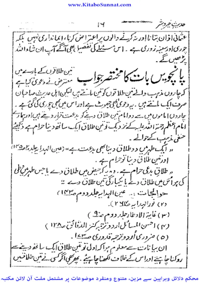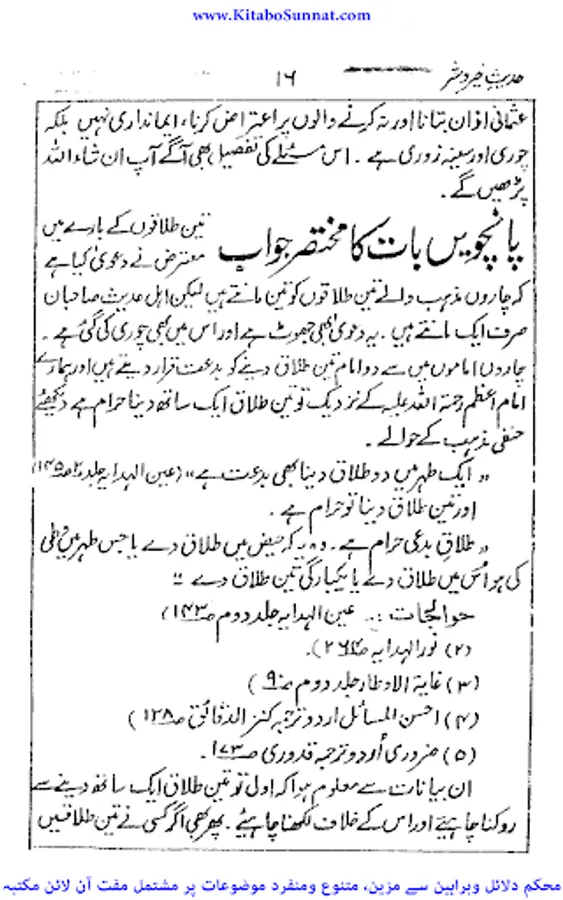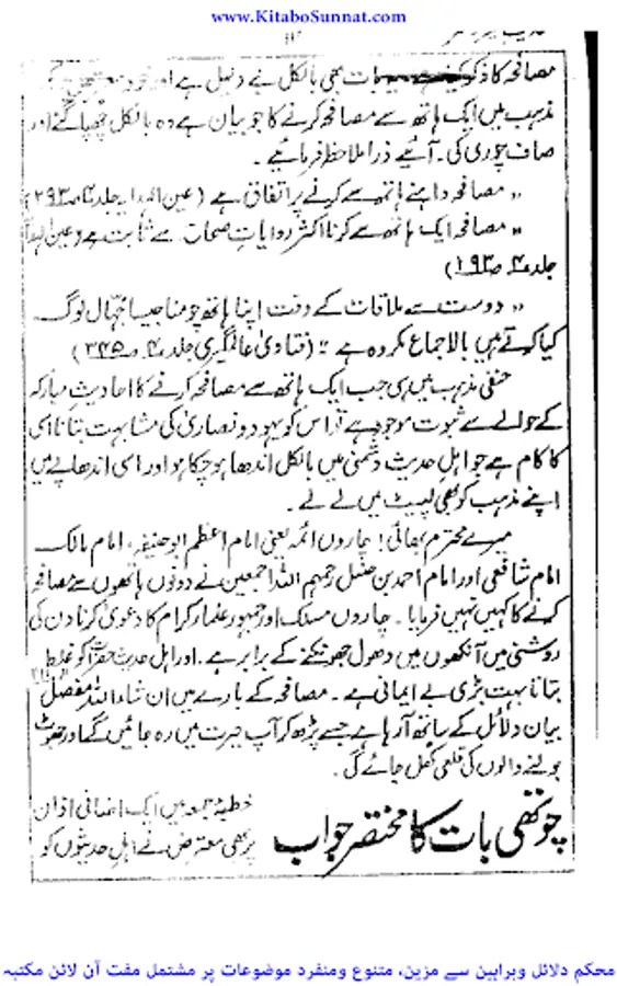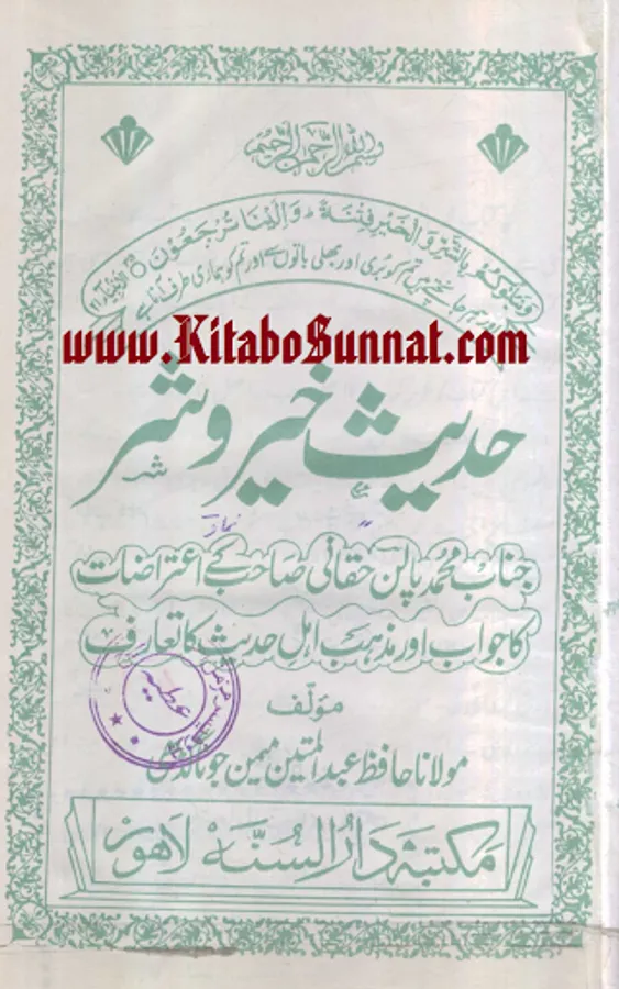 جب سے یہ کائنا ت معرض وجود میں آئی اللہ تعالیٰ نے بنی نوع انسان کی راہنمائی کے لیے اپنے برگزیدہ اور محبوب انبیاء اور رسل کو مبعوث فرمایا ۔جو اپنے اپنے مخصوص علاقوں، بستیوں میں لوگوں کی اصلاح فرماتے رہے ۔اگر انبیاء رسل نہ آتے تو کائنات ایک ایسی کتاب ہوتی جس کے ابتدائی اور آخری صفحات کھو گئے ہوں۔اسی سلسلہ کا آغاز حضرت آدم سے ہوا اور آخر ی کڑی ختمی المرتبت فخر رسل سیدنا محمد ﷺ ہیں ۔آپﷺ کی زندگی کا ایک ایک گوشہ اور بول آپ کی ولادت سے وفات تک، کماحقہ محفوظ ہے ۔سیرت نگاروں نے آپ ﷺ کی حیات طیبہ کے تمام پہلوؤں پرشرح بسط سےلکھا ہے۔ ملت اسلامیہ کے ہر فرد کے لیے رسول ﷺکااسوہ حسنہ حرزجاں کی حیثیت رکھتا ہے اور قرون اولیٰ میں اسلاف کا اس پر تمسک ایک تاریخی ریکاڈ ہے مگر رفتہ رفتہ لوگوں نے اپنے اکابر،بزرگوں،ائمہ اور آباء کی پیروی شروع کر دی اور اتباع کو چھوڑ کر تقلید کو اپنا لیاتو معاشرے میں بدعات و خرافات نے جنم لیا۔مسلمانوں نے اپنے اپنے ائمہ کی تقلید کو لازم کر لیااورحنفی،شافعی،مالکی،حنبلی،وغیرہم کہلوانے میں فخر محسوس کرنے لگے اور اپنے مسلک کے دفاع پر اتر آئے حتی کہ ضعیف وموضوع، روایات کا سہارالیتے ہوئے اپنے اپنے مذہب کو ثابت کرنے پر کمر باندھ لی ۔مگر درحقیقت امت مسلمہ کی بھلائی اور نجات اطاعت نبوی ﷺ میں ہی مضمر ہے ۔ائمہ واکابرقابل احترام ہیں مگر ذریعہ نجات آپﷺ کا اسوہ ہے۔ زیر تبصرہ کتاب "حدیث خیروشر" حافظ عبدالمتین میمن جوناگڑھی کی تصنیف ہے۔موصوف بھارت کے ممتاز عالم دین ہیں۔یہ کتاب انہوں نے "محمد پالن حقانی" کی کتاب "شریعت یا جہالت"کے جواب میں تحریر کی۔ حقانی صاحب نے اپنی کتاب میں اہل الحدیث پر طعنہ زنی کرتے ہوئے ایک ہاتھ سے مصافحہ کرنے کو یہودونصاریٰ سے مشابہت قرار دیا۔تو جناب حافظ عبدالمتین میمن جوناگڑھی نے محمد پالن حقانی کےاس اعتراض اور احناف کے کئی ایک مغالطوں کا دلائل وبراہین سےکتاب ہذا میں تعاقب کیا اور حقانی صاحب کے اعتراضات کا کتاب وسنت کی روشنی میں مدلل اور مسکت جوابات کااہتمام کیا۔اللہ تعالیٰ سے ہم دعاگو ہیں اللہ مصنف کی اس کاوش کو قبول فرمائے ۔اور ہم سب کو فرقہ واریت سے محفوظ رکھتے ہوئے خالص دین کے نور سے مالامال فرمائے ۔(آمین) (عمیر).