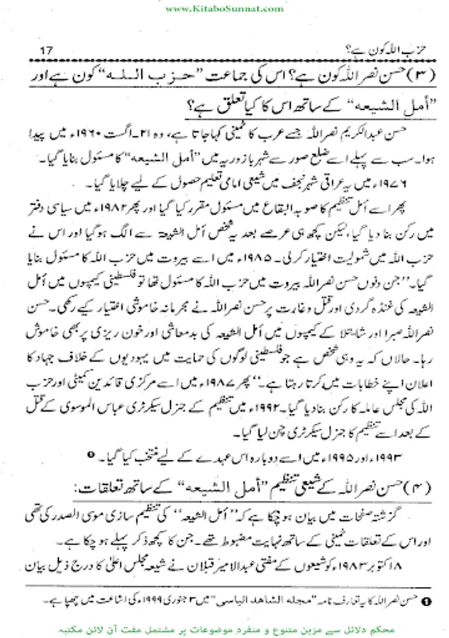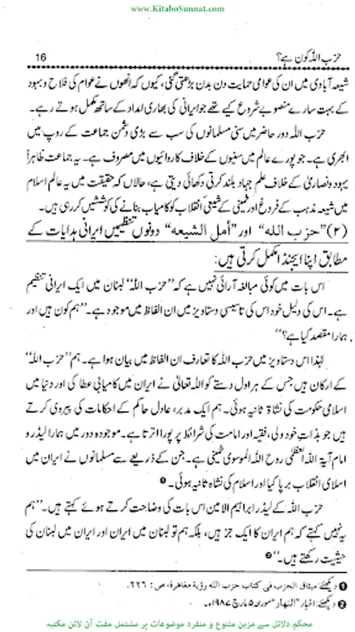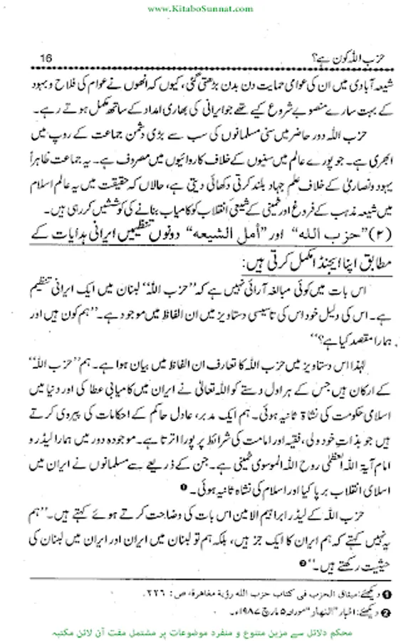 لبنان میں حزب اللہ شیعہ کی ایک انتہائی طاقتور سیاسی اور فوجی تنظیم خیال کی جاتی ہے۔ ایران کی پشت پناہی سے انیس سو اسی میں تشکیل پانے والی اس جماعت نے لبنان سے اسرائیلی فوجی دستوں کے انخلاء کے لیے جدوجہد کی۔تنظیم کو مئی دوہزار میں اپنے اس مقصد میں کامیابی حاصل ہوئی۔ اس عمل کے پس منظر میں جماعت کی عسکری شاخ اسلامی مزاحمت یا اسلامک ریزسسٹینس کا ہاتھ تھا۔لبنان پر اسرائیلی قبضے کے بعد علماء کے ایک چھوٹے سے گروہ سے ابھرنے والی اس تنظیم کے اوائلی مقاصد میں اسرائیل کے خلاف مزاحمت اور لبنان سے غیر ملکی فوجوں کا انخلاء تھا۔اس کا ایک مقصد یہ بھی تھا کہ لبنان کی کثیر المذہبی ریاست کی جگہ ایرانی طرز کی اسلامی ریاست بنائی جائے مگر بعد میں اسے یہ خیال ترک کرنا پڑا۔ زیر تبصرہ کتاب" حزب اللہ کون ہے؟" محترم علی الصادق صاحب کی تصنیف ہے، جس میں انہوں نے لبنان ، ایران اور خلیجی ممالک میں سر گرم تنظیم حزب اللہ کے بارے میں انکشافات فرمائے ہیں۔اور اس کے کام کے طریقہ کار کو بیان کیا ہے۔(راسخ).