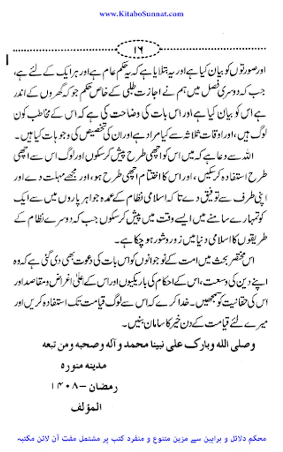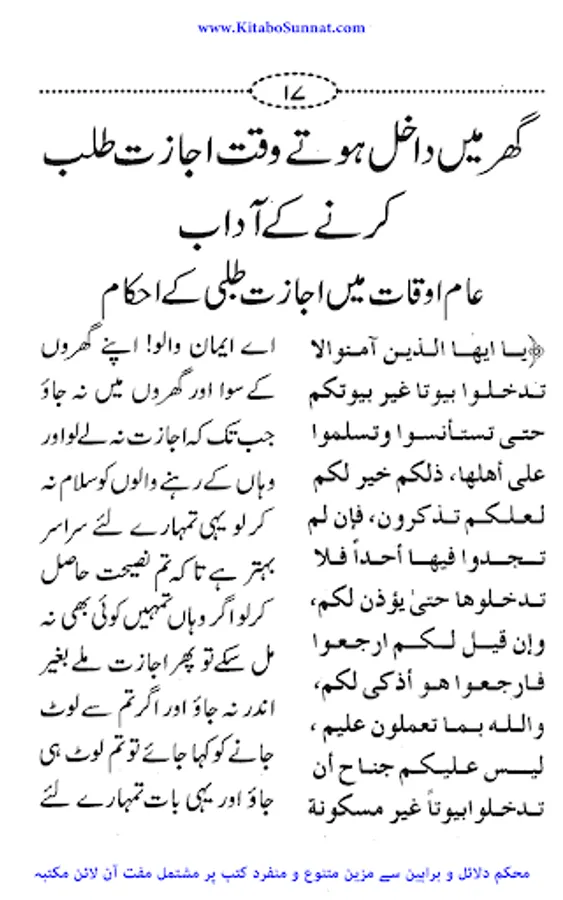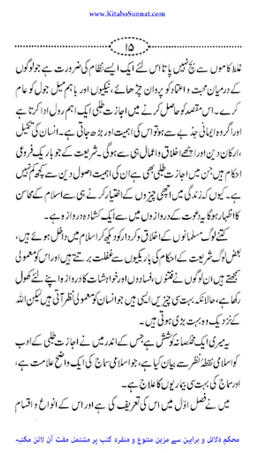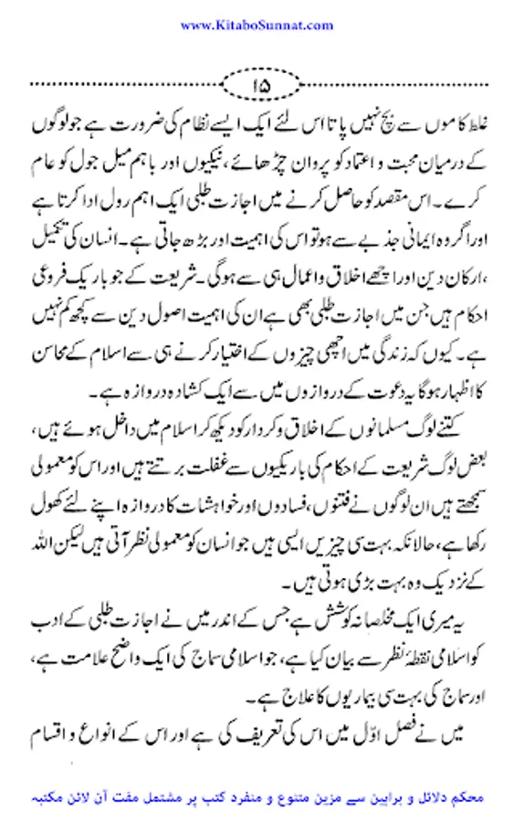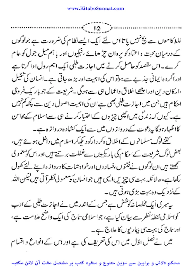اسلام نے محاسن اور اس کی اعلیٰ ترین خوبیوں میں سے سماجی اور معاشرتی آداب اور احکام بھی ہیں‘ جس کی وجہ سے ہر چھوٹے بڑے کے حقوق محفوظ اور ان کی حرمت‘ تقدس اور شخصیت کا احترام باقی ہے اور ہر شخص اپنے دائرہ عمل میں آزاد اور مطمئن ہے‘ ان سماجی احکامات میں سے ’’ استئذان‘‘ گھروں میں داخل ہونے اور کسی سے ملاقات کرنے کے لیے ’’ اجازت‘‘ طلب کرنا ‘‘ شریعت اسلامیہ کا خاص حکم اور ادب ہے۔ اس معاملہ میں بڑے‘ چھوٹے‘ علماء اور جہلاء‘ سلاطین اور رعایا‘ ماں اور باپ‘ والدین اور اولاد‘ بالغ ونابالغ‘ مردوخواتین اور محرم ونامحرم سب برابر ہیں۔ زیرِ تبصرہ کتاب میں بھی اسی مسئلے کو زیرِ بحث لایا گیا ہے اور مصنف نے بڑی تحقیقی نظر سے کتاب وسنت کے جامع احکامات کی ایسی دل نشین تشریح فرمائی ہے کہ یہ اہم ترین مسئلہ بخوبی واضح ہو کر ہر عالم وجاہل کے لیے آسان اور عام فہم ہو گیا ہے۔ اس کتاب کو آسان سے آسان تر لہجے اور زبان میں پیش کیا گیا ہے اور اس کی فصل اول میں استئذان کی تعریف اور انواع اقسام کو بیان کیا گیا ہے۔ دوسری فصل میں اجازت طلبی کے احکامات کو بیان کیا گیا ہے اور اوقات خاصہ اور ان کی تخصیص کی وجوہ کو بیان کیا گیا ہے ۔ یہ کتاب’’ اجازت طلبی کے احکام ومسائل ‘‘ ڈاکٹر عبد الرب نواب الدین کی مرتب کردہ ہے۔آپ تصنیف وتالیف کا عمدہ شوق رکھتے ہیں‘ اس کتاب کے علاوہ آپ کی اور کتب بھی ہیں۔ دعا ہے کہ اللہ تعالیٰ مؤلف وجملہ معاونین ومساعدین کو اجر جزیل سے نوازے اور اس کتاب کو ان کی میزان میں حسنات کا ذخیرہ بنا دے اور اس کا نفع عام فرما دے۔(آمین)( ح۔م۔ا ).