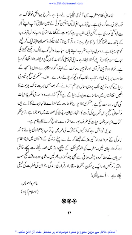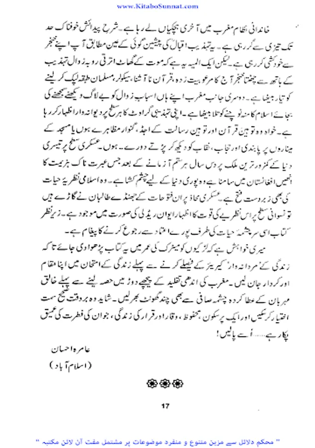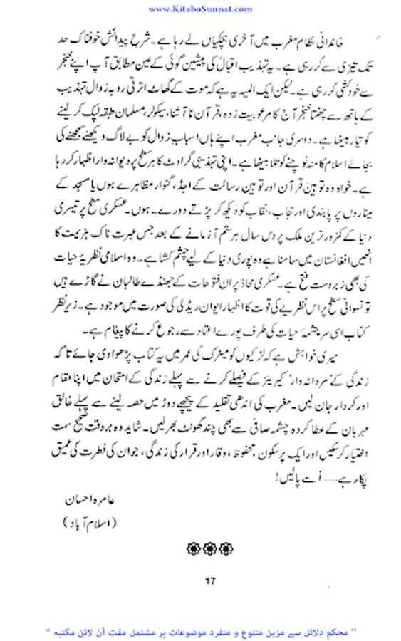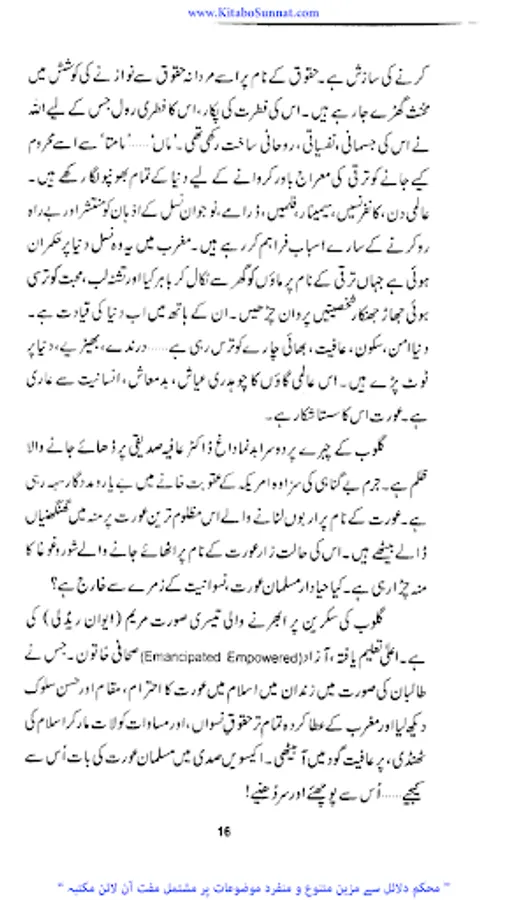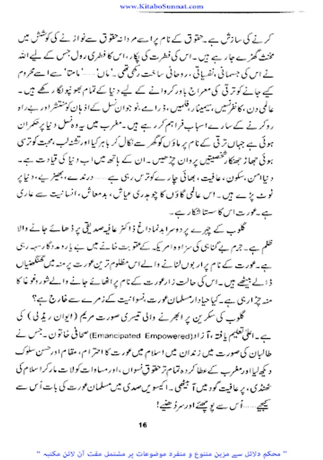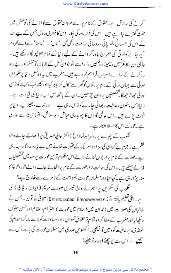 اللہ تعالی نے عورت کو معظم بنایا لیکن قدیم جاہلیت نے عورت کو جس پستی کے گھڑے میں پھینک دیا اور جدید جاہلیت نے اسے آزادی کا لالچ دے کر جس ذلت سے دو چار کیا وہ کسی سے ڈھکا چھپا نہیں ہے ایک طرف قدیم جاہلیت نے اسے زندگی کے حق سے محروم کیا تو جدید جاہلیت نے اسے زندگی کے ہر میدان میں دوش بدوش چلنے کی ترغیب دی اور اسے گھر کی چار دیواری سے نکال کر شمع محفل بنادیا ۔ جاہل انسانوں نےاسے لہب ولعب کاکھلونا بنا دیا اس کی بدترین توہین کی اور اس پر ظلم وستم کی انتہا کردی تاریخ کے اوراق سے پتہ چلتاہے کہ ہر عہد میں عورت کیسے کیسے مصائب ومکروہات جھیلتی رہی اور کتنی بے دردی سے کیسی کیسی پستیوں میں پھینک دی گئی اور عورت اپنی عزت ووقار کھو بیٹھی آزادی کے نام پر غلامی کا شکار ہوگئی۔ ۔ لیکن جب اسلام کا ابرِ رحمت برسا توعورت کی حیثیت یکدم بدل گئی ۔محسن انسانیت جناب رسول اللہ ﷺ نے انسانی سماج پر احسان ِعظیم فرمایا عورتوں کو ظلم ،بے حیائی ، رسوائی اور تباہی کے گڑھے سے نکالا انہیں تحفظ بخشا ان کے حقوق اجاگر کیے ماں،بہن ، بیوی اور بیٹی کی حیثیت سےان کےفرائض بتلائے اورانہیں شمع خانہ بناکر عزت واحترام کی سب سےاونچی مسند پر فائز کردیااور عورت و مرد کے شرعی احکامات کو تفصیل سے بیان کردیا ۔آج مغربی اقوام بھی عورت کی غلام بنام آزادی سے تنگ آچکی ہیں ۔ کیونکہ مغربی تمدن میں اس بے جا آزادی کے نتائج ،زنا کاری اور بے حیائی کی شکل میں ظاہر ہورہے ہیں افسو س اس بات کا ہے کہ مسلمان عورت بھی آج اسی آزادی کے حصول کی کوشش میں سرگرداں نظر آتی ہے جبکہ اسلام قرآن کے ذریعے اس کا قرآن وحدیث کے لیے اس کا مقام ، حیثیت اور حقوق وفرائض متعین کرتا ہے۔ زیر نظر کتاب ’’اکیسویں صدی اور مسلمان عورت ‘‘ محترمہ عامرہ احسان کی مرتب شدہ ہے ۔ انہوں نےاس کتاب میں عصر حاضر میں خواتین کے پیش آنے والے مسائل اور حالات کا تجزیہ کیا ہے ۔ عورت کی نفسیات کے پچیدہ پہلوؤں پر بڑی ہی پُر معنیٰ بحث کی ہے۔ کتاب کوتاریخی دلائل سے سجایا ہے اور اس تجزیے کےدوران مسلمان عورت اور یورپ زدہ عورت کےفکری خدو خال پوری طرح واضح کیے ہیں ۔ جہاں انہوں نےقرآن وحدیث کی روشنی میں عورت کے فطری مقام کوواضح کیا اور اسکےبہترین نتائج کو نئی نسل کےسامنے رکھا ہے وہیں یورپ کےعلمی ماخذ اور مستند کتابوں کے ذریعے خواتین کو دوسرے رخ سےبھی باخبر کیا ہے ۔اور بڑی محنت سے مسلمان خواتین کی رہنمائی فرمائی ہے کہ اللہ تعالیٰ اور رسول اللہﷺ ان سے کیا چاہتے ہیں اور کن فتنوں سےانہیں خود کوبھی اوراپنے خاندان کو بھی بچانا ہے جو زن کو نازن بلکہ ناگن بنادیتے ہیں ۔(م۔ا).