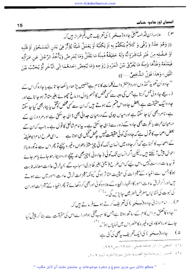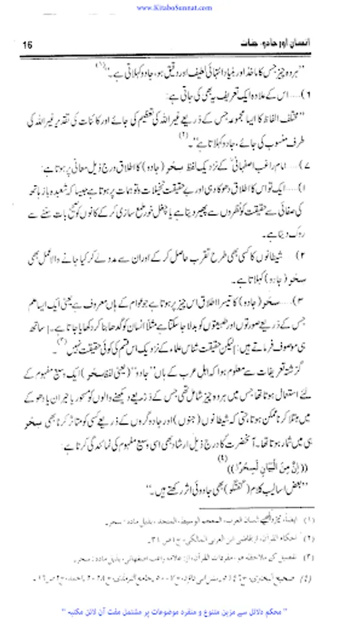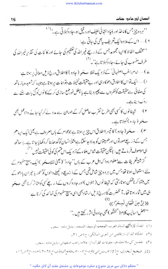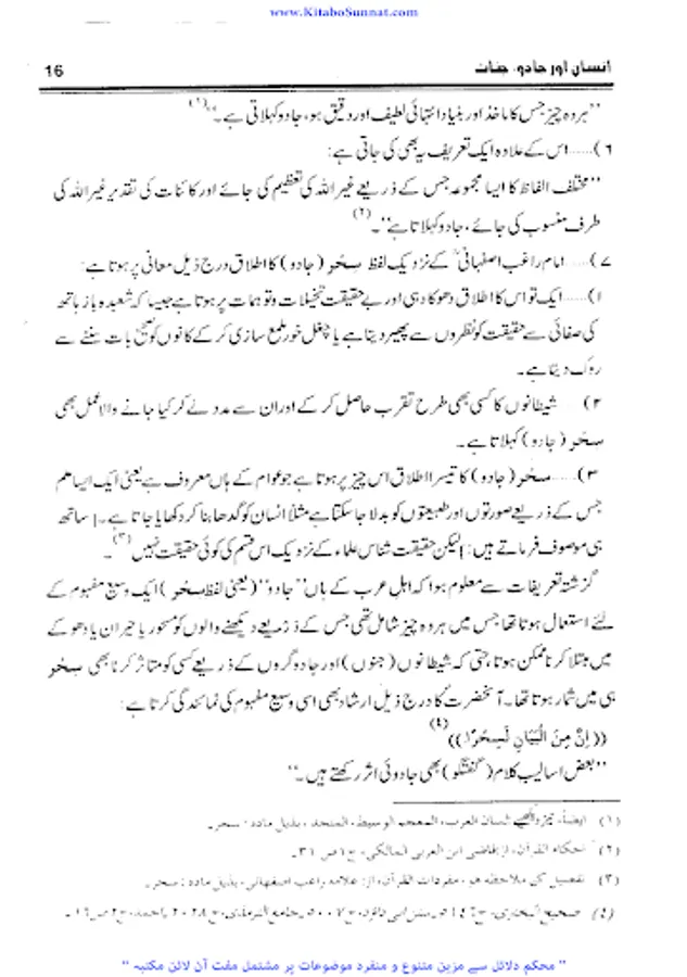 جادو، جنات کاموضوع سرزمین پاک وہند میں ہمیشہ سےعوام وخواص کی دلچسپی اور توجہ کاموضوع رہا ہے۔جادو کرنا او رکالے علم کےذریعے جنات کاتعاون حاصل کر کے لوگوں کو تکالیف پہنچانا شریعتِ اسلامیہ کی رو سےمحض کبیرہ گناہ ہی نہیں بلکہ ایسا مذموم فعل ہےجو انسان کو دائرۂ اسلام سے ہی خارح کردیتا ہے اور اسے واجب القتل بنادیتا ہے ۔جادو اور جنات سے تعلق رکھنے والی بیماریوں کے علاج کےلیے کتاب وسنت کے بیان کردہ طریقوں سے ہٹ کر بے شمار لوگ شیطانی اور طلسماتی کرشموں کے ذریعے ایسے مریضوں کاعلاج کرتے نظر آتے ہیں جن کی اکثریت تو محض وہم وخیال کے زیر اثر خود کو مریض سمجھتی ہے ۔جادوکا موضوع ان اہم موضوعات میں سے ہے جن کا بحث وتحقیق اور تصنیف وتالیف کے ذریعے تعاقب کرنا علماء کےلیے ضروری ہے کیونکہ جادو عملی طور پر ہمارے معاشروں میں بھر پور انداز سے موجود ہے اور جادوگرچند روپوں کے بدلے دن رات فساد پھیلانے پر تلے ہوئے ہیں جنہیں وہ کمزور ایمان والے اور ان کینہ پرور لوگوں سے وصو ل کرتے ہیں جو اپنے مسلمان بھائیوں سے بغض رکھتے ہیں او رانہیں جادو کے عذاب میں مبتلا دیکھ کر خوشی محسوس کرتےہیں لہذا علماء کے لیے ضروری ہے کہ جادو کے خطرے او راس کے نقصانات کے متعلق لوگوں کوخبر دارکریں اور جادو کا شرعی طریقے سے علاج کریں تاکہ لوگ اس کے توڑ اور علاج کے لیے نام نہادجادوگروں عاملوں کی طرف رخ نہ کریں۔ زیر تبصرہ کتاب’’انسان اور جادو جنات‘‘ ڈاکٹر حافظ مبشرحسین﷾ کی تصنیف ہے اس کتاب میں انہوں نے جادو ،جنات کے موضوع کا قرآن وسنت او رواقعاتی تجربات کی روشنی میں جائزہ لیتے ہوئے ان مباحث پر خاص طور توجہ دی ہے جو ایک مسلمان کے عقائد سے تعلق رکھتے ہیں اور جہاں جہاں موصوف نےیہ محسوس کیا کہ فلاں چیز خرابی عقائد کا ذریعہ بن سکتی ہے اس سے متنبہ کرنےکی پوری کوشش کی ہے ۔اور پاک وہند میں جادو کےحوالے سے جو اعتراضات کیے جاتے ہیں کتاب ہذا میں ان کےتشفی بخش جواب دئیے گئے ہیں ۔جادو ، جنات کے توڑ کے علاوہ روحانی علاج معالجہ کے حوالے سے بھی قرآن وسنت کی روشنی میں تفصیلات اس کتا ب میں پیش کردی گئی ہیں اور بہت سے جسمانی بیماریوں کے روحانی علاج پیش کیے ہیں۔(م۔ا).