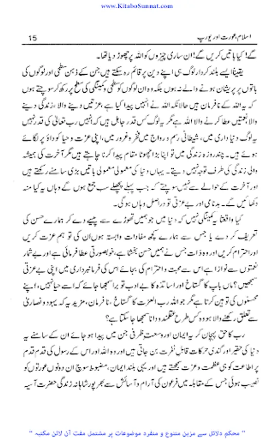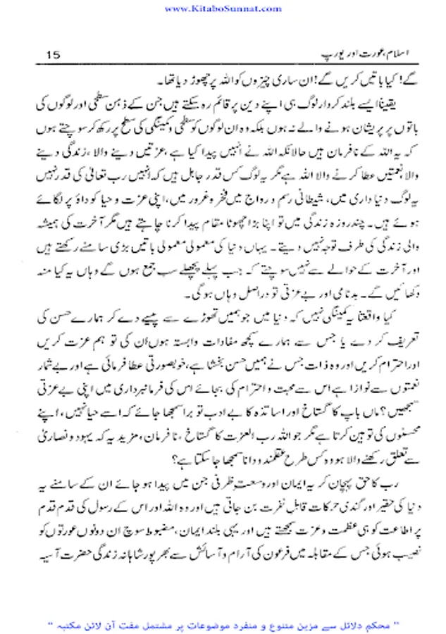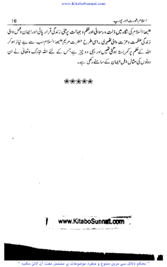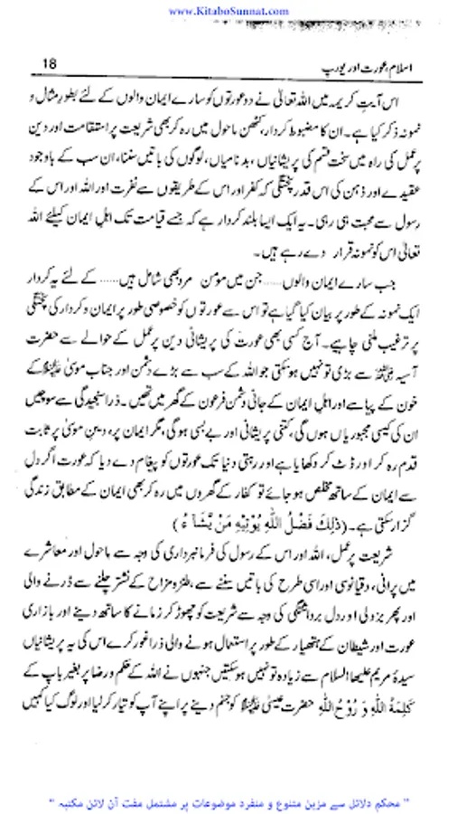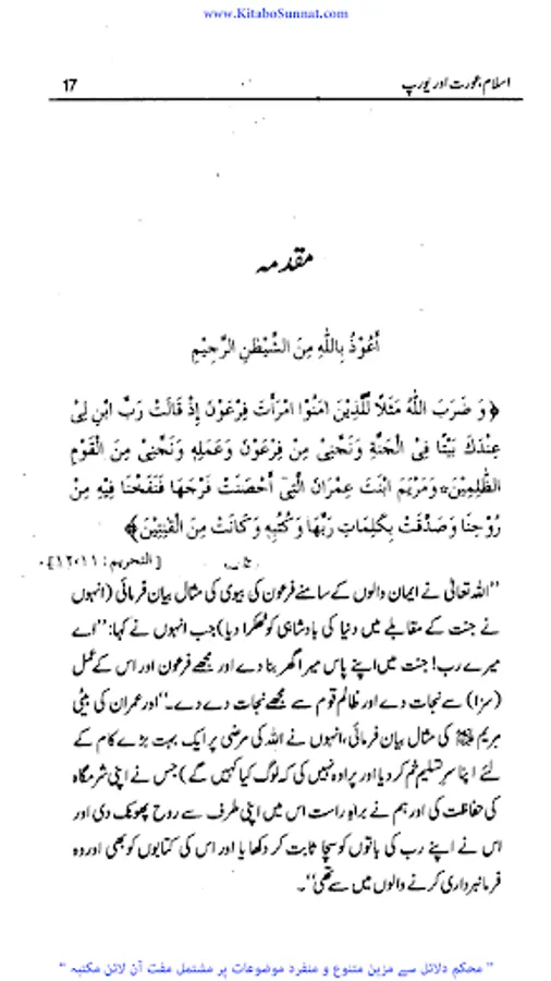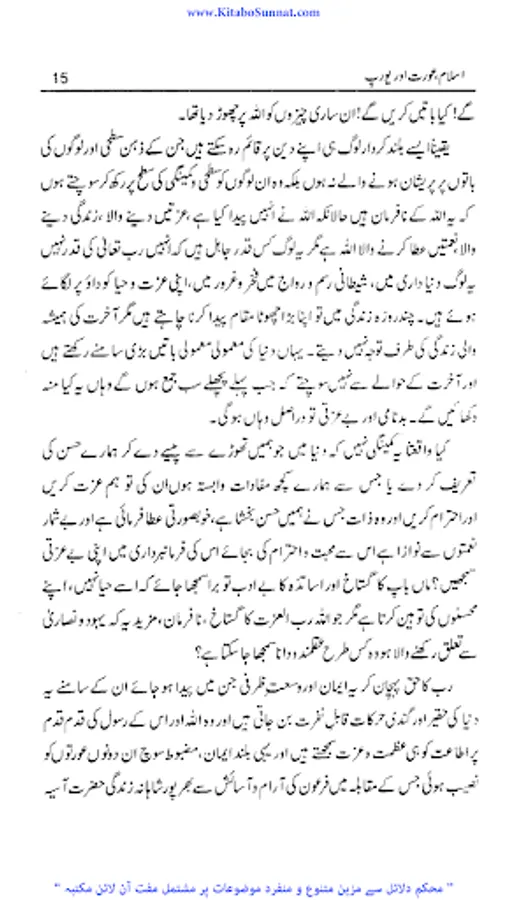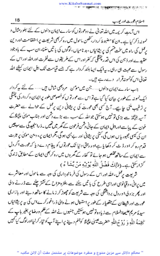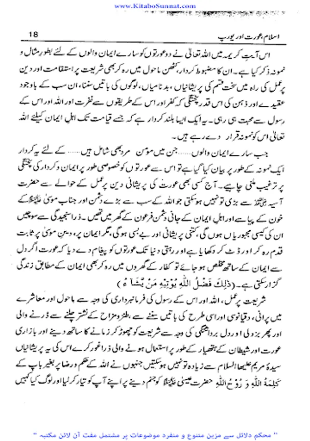 اللہ تعالی نے عورت کو معظم بنایا لیکن قدیم جاہلیت نے عورت کو جس پستی کے گھڑے میں پھینک دیا اور جدید جاہلیت نے اسے آزادی کا لالچ دے کر جس ذلت سے دو چار کیا وہ کسی سے ڈھکا چھپا نہیں ہے ایک طرف قدیم جاہلیت نے اسے زندگی کے حق سے محروم کیا تو جدید جاہلیت نے اسے زندگی کے ہر میدان میں دوش بدوش چلنے کی ترغیب دی اور اسے گھر کی چار دیواری سے نکال کر شمع محفل بنادیا ۔ جاہل انسانوں نےاسے لہب ولعب کاکھلونا بنا دیا اس کی بدترین توہین کی اور اس پر ظلم وستم کی انتہا کردی تاریخ کے اوراق سے پتہ چلتاہے کہ ہر عہد میں عورت کیسے کیسے مصائب ومکروہات جھیلتی رہی اور کتنی بے دردی سے کیسی کیسی پستیوں میں پھینک دی گئی اور عورت اپنی عزت ووقار کھو بیٹھی آزادی کے نام پر غلامی کا شکار ہوگئی۔ ۔ لیکن جب اسلام کا ابرِ رحمت برسا توعورت کی حیثیت یکدم بدل گئی ۔محسن انسانیت جناب رسول اللہ ﷺ نے انسانی سماج پر احسان ِعظیم فرمایا عورتوں کو ظلم ،بے حیائی ، رسوائی اور تباہی کے گڑھے سے نکالا انہیں تحفظ بخشا ان کے حقوق اجاگر کیے ماں،بہن ، بیوی اور بیٹی کی حیثیت سےان کےفرائض بتلائے اورانہیں شمع خانہ بناکر عزت واحترام کی سب سےاونچی مسند پر فائز کردیااور عورت و مرد کے شرعی احکامات کو تفصیل سے بیان کردیا ۔آج مغربی اقوام بھی عورت کی غلام بنام آزادی سے تنگ آچکی ہیں ۔ کیونکہ مغربی تمدن میں اس بے جا آزادی کے نتائج ،زنا کاری اور بے حیائی کی شکل میں ظاہر ہورہے ہیں افسو س اس بات کا ہے کہ مسلمان عورت بھی آج اسی آزادی کے حصول کی کوشش میں سرگرداں نظر آتی ہے جبکہ اسلام قرآن کے ذریعے اس کا قرآن وحدیث کے لیے اس کا مقام ، حیثیت اور حقوق وفرائض متعین کرتا ہے۔ زیر تبصرہ کتاب ’’ اسلام عورت اور یورپ ‘‘ مولانا احسان الحق شبہاز کی تصنیف ہے ۔ انہوں نےاس کتاب میں عورت پر اسلام کے عظیم الشان احسانات کا تذکرہ اور مغرب کے مظام کا پردہ چاک کرتے ہوئے اسلام کے عورت پر احسانات اور مغرب کے آزادی کےنام عورت کیے جانے والے مظام کا تقابل کیا ہے ۔اسلام نےعورت کو گھر کی ملکہ بنایا ،یورپ نے اسے سربازار رسوا کیا ۔ اسلام نے ماں ،بہن ، بیٹی اور بیوی کی حیثیت سے تقدس دیا یورپ نے انسانیت کی تمام حدود پھلانگتے ہوئے زنا ، بدکاری اور بے راہ روی کی بدترین بنیادوں پر معاشرہ تباہ کیا۔اسلام نے پردہ کےاحکامات کے ذریعے عفت وعصمت کے آبگینے کی حفاظت کا اہتمام جبکہ یورپ نےسینما گھر ، وی سی آر، ڈش ، اور کیبل نیٹ کے شیطانی جال بچھا کر عفت مآب خاندانوں کو ذلت آمیز انجام سےدو چار کیا۔ مخلوط تعلیم دلوا کر آشناؤں کے ساتھ فرار کے راستے دکھائے۔ اپنے عدالتی نظام کے ذریعے کورٹ میرج کروائے اوراپنے سیاسی نظام کے ذریعے اسمبلیوں کی زینت بنایا۔یورپ نے عورت کی فطری نزاکتوں کو اسلام کےخلاف اس برے طریقے سےاستعمال کیا اوراتنا غلیظ پروپگنڈہ کیاکہ آج یوں محسوس ہوتا ہے گویا اسلام عورتوں کے حقوق کامخالف اوریورپ ان کامحاظ ہے ۔یہ کتاب اپنے موضوع میں نہایت جامع ہے۔یورپ سےمتاثر طبقے بالخصوص خواتین کو اس کالازمی مطالعہ کرنا چاہیے۔ تاکہ ان کےسامنے حق واضح ہوجائے اور کفر وطاغوت کی سازشوں کاقلع قمع ہوجائے ۔(م۔ا).