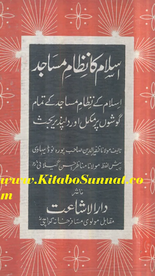 مساجد کی تعمیر اور آبادکاری ایمان کی علامت ہے ۔مساجد دین اسلام میں ایک عظیم دینی شعار اور درخشاں علامت کی حیثیت رکھتی ہیں۔ یہ روئے زمین کا سب سے بہتر ٹکڑا ہیں۔اسلام اور مسلمانوں کا مرکزی مقام اور ہیڈ کوارٹر یہی مساجد ہیں ۔ مسجد سے قلبی لگاؤ اور پابندی کے ساتھ اس کی حاضری ایمان کی نشانی ہے۔ مساجد روزِ اوّل سے رشد وہدایت، اسلام کی تبلیغ واشاعت اور ملی جدوجہد کا مرکز رہی ہیں۔ یہیں سےپیغامِ اسلام ساری ساری دنیا میں نشر ہوتاہے ۔ ملت اسلامیہ کی علمی، ثقافتی اور روحانی قوتوں کا یہی سرچشمہ ہیں۔ یہیں سے امت محمدیہ نے ماضی میں بھی اسلام کا سبق لیا اور آئندہ بھی سب سے بڑا علمی اور ثقافتی مرکز مساجد ہی رہیں گی۔ (ان شاء اللہ ) مگر افسوس مسلمانوں کےملی انحطاط سے مساجد بھی متاثر ہوئی ہیں۔ مسجد اپنے شرعی مقاصد اور روح سےخالی ہوتی جارہی ہیں۔ دین سے جاہل ،دنیوی جاہ جلال اور ٹھاٹھ باٹھ کےپجاری متولیان کی اجارہ داری کے سبب مساجد کا ماحول بے رو ،وحشت ناک اور خستہ ہوتا جارہا ہے۔ جس سے ملتِ اسلامیہ کی تربیت اور نشوو نما پر بھی برا اثر پڑ رہا ہے ضرورت اس امر کی ہےکہ مساجد کا حقیقی مقام اور اصلی حیثیت بحال کی جائے ۔ زیرنظر کتاب ’’ اسلام کا نظام مساجد‘‘ مولانا ظفیرالدین کی تصنیف ہے ۔انہوں نے اس کتاب میں اسلام کے نظام مساجد کے تمام گوشوں پر مکمل اور دلپذیر بحث کی ہے جس میں مسلمانوں کے لیے مسجد سے متعلق ہر قسم کی معلومات نہایت عام فہم انداز میں قرآن وحدیث کی روشنی میں جمع کردی ہیں ۔(م۔ا).