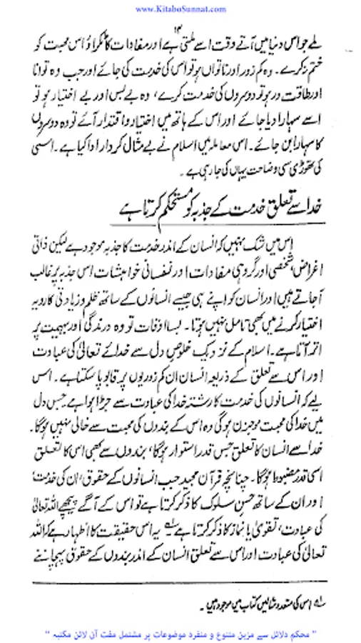 انسان اپنی فطری ،طبعی، جسمانی اور روحانی ساخت کے لحاظ سے سماجی اور معاشرتی مخلوق ہے ۔یہ اپنی پرورش،نشو ونما،تعلیم وتربیت،خوراک ولباس اور دیگر معاشرتی ومعاشی ضروریات پور ی کرنے کے لیے دوسرے انسانوں کا لازماً محتاج ہوتا ہے ۔یہ محتاجی قدم قدم پر اسے محسوس ہوتی او رپیش آتی ہے۔ اسلام ایک دین فطرت ہے اس لیے اس نے اس کی تمام ضروریات اور حاجات کی تکمیل کاپورا بندوبست کیا ہے۔ یہ بندو بست اس کےتمام احکام واوامر میں نمایا ں ہے ۔ اسلام نے روزِ اول سے انبیاء کرام کے اہم فرائض میں اللہ کی مخلوق پر شفقت ورحمت او ران کی خدمت کی ذمہ داری عائد کی ۔اس ذمہ داری کو انہوں نے نہایت عمدہ طریقہ سے سرانجام دیا ۔اور نبی کریم ﷺ نے بھی مدینہ منورہ میں رفاہی، اصلاحی اور عوامی بہبود کی ریاست کی قائم کی ۔ زیر تبصرہ کتاب ’’اسلام میں خدمت خلق کا تصور ‘‘ انڈیا کےنامور اسلامی اسکالر محترم جناب سید جلال الدین عمری ﷾ کی تصنیف ہے ۔ا س کتا ب میں انہوں نے خدمت خلق کے تمام پہلوؤں پر قرآن وحدیث کی روشنی میں بحث کی ہے موصوف نے کوشش کی ہے کہ موضوع سے متعلق آیات واحادیث کابڑی حد تک احاطہ ہوجائے اور موقع ومحل کی مناسبت سےان کا صحیح مفہوم واضح ہوجائے ۔ اس ضمن میں خدمت خلق کے وہ پہلو بھی سامنے آجائیں جن کا موجودہ دور تقاضا کرتا ہے ۔( م۔ا).