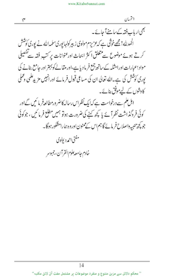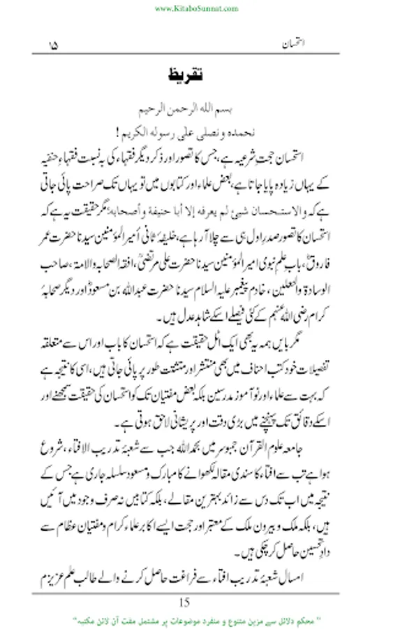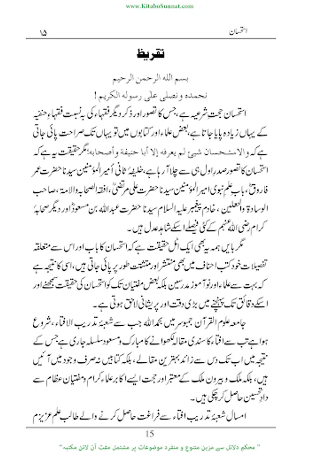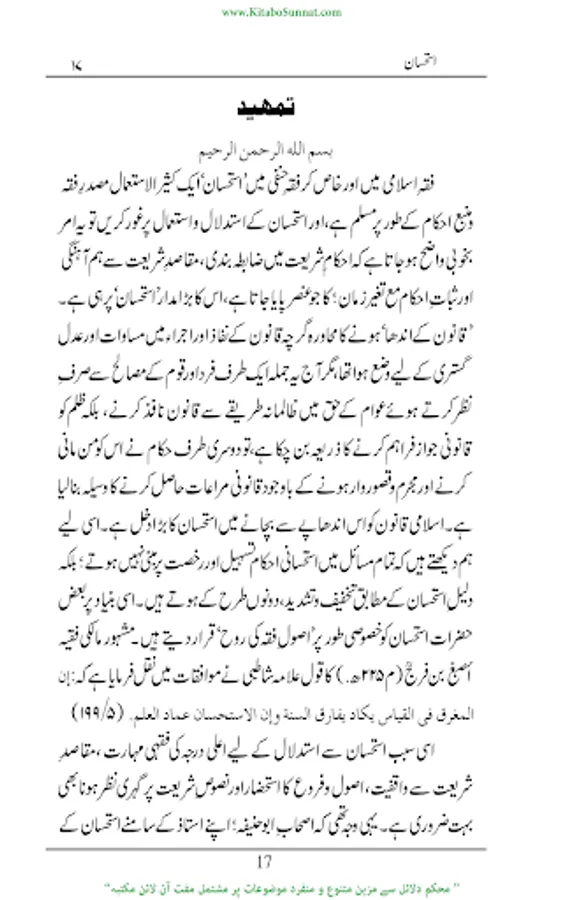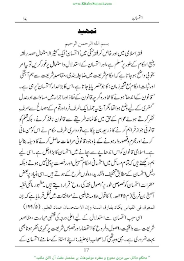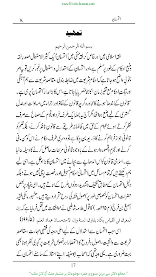 فقہ اسلامی میں اور خاص کر فقہ حنفی میں استحسان ایک کثیر الاستعمال مصدر فقہ ومنبع احکام کے طور مسلم اور حجت شرعیہ ہےجس کا تصور اور ذکردیگر فقہاء کی بہ نسبت فقہاء حنفیہ کےہاں زیادہ پایا جاتاہے۔ زیرنظرکتاب’’ استحسان‘‘ کا مفتی زبیر بن قاسم کے ایک تحقیقی مقالہ کی کتابی صورت ہے مقالہ نگار نے اس مقالہ میں استحسان کی حقیقت معدول عنہ، معدول الیہ، حقیقت،اقسام،ارکان کی مفصل ومرتب تفصیلات تحریر کی ہیں اور بڑی جانفشانی اورعرق ریزی سے موضوع کے تمام پہلوؤں کااحاطہ کیا ہے۔(م۔ا).