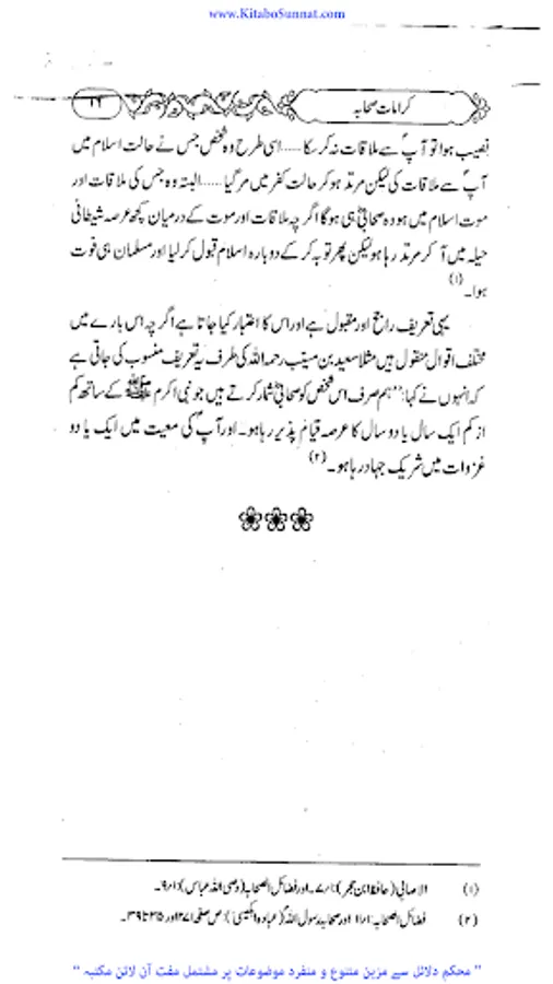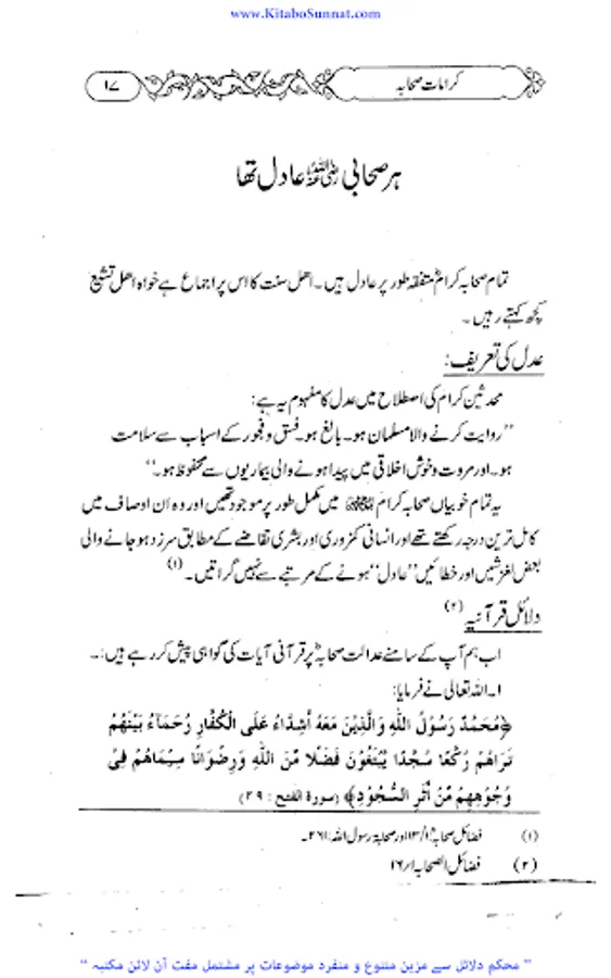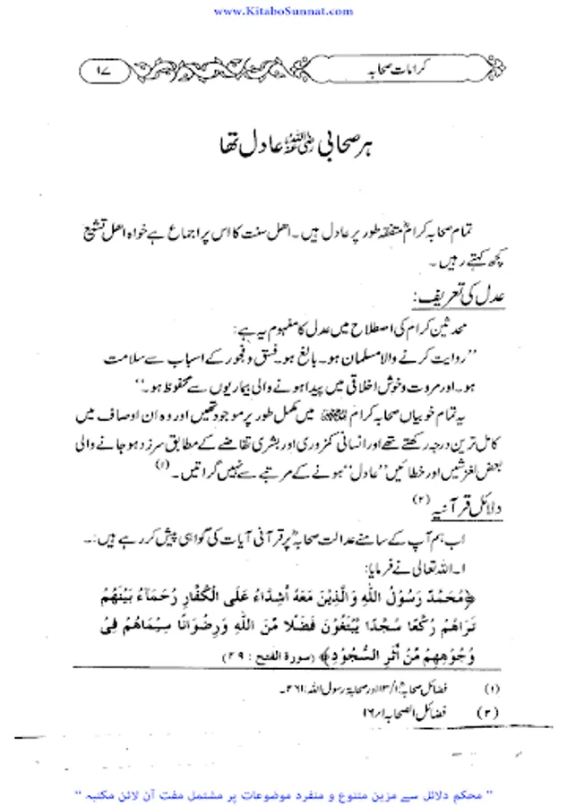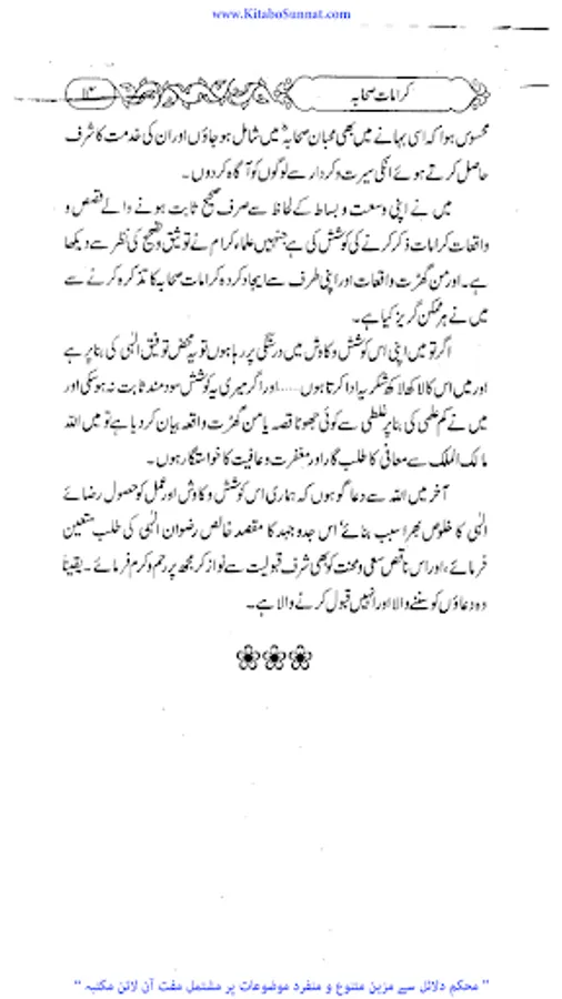 کرامت لغوی اعتبار سے عزت اور شرافت کو کہتے ہیں اور اصطلاحی طور پر اس کا اطلاق اس عمل پر ہوتا ہے جو کسی نیک بندے کے ہاتھ سے خلاف عادت ظہور پذیر ہو۔معجزے اور کرامت میں فرق یہ ہے کہ معجزے کا ظہور نبی کے ذریعے ہوتا ہے اور کرامت ولی کے ذریعے ظہور پذیر ہوتی ہے۔صحابہ کرام اس امت کے سب سے افضل واعلی لوگ تھے ،انہوں نے نبی کریم ﷺ کو اپنی آنکھوں سے دیکھا،ان کے ساتھ مل کر کفار سے لڑائیاں کیں ، اسلام کی سر بلندی اور اللہ اور اس کے رسول کی خوشنودی کے لئے اپنا تن من دھن سب کچھ قربان کر دیا۔پوری امت کا اس بات پر اتفاق ہے کہ صحابہ کرام تمام کے تمام عدول ہیں یعنی دیانتدار،عدل اور انصاف کرنے والے ،حق پر ڈٹ جانے والے اور خواہشات کی طرف مائل نہ ہونے والے ہیں۔صحابہ کرام کے بارے میں اللہ تعالی کا یہ اعلان ہے کہ اللہ ان سے راضی ہے اور وہ اللہ سے راضی ہیں۔صحابہ کرام کے ہاتھوں بھی بے شمار کرامات کا ظہور ہوا۔ زیر تبصرہ کتاب" کرامات صحابہ " محترم مولانا اسعد محمد الطیب صاحب کی تصنیف ہے، جس کا ترجمہ وتخریج محترم ابو القاسم حافظ محمود احمد نے کیا ہے جبکہ نظرثانی محترم مولانا ابو ضیاء محمود احمد غضنفر صاحب کی ہے۔اس کتاب میں مولف موصوف نے صحابہ کرام کے ہاتھوں ظہور پذیر ہونے والی کرامات کو جمع فرما دیا ہے۔ اللہ تعالی سے دعا ہے کہ وہ مولف اور مترجم کی اس محنت کو اپنی بارگاہ میں قبول فرمائے اور ان کے میزان حسنات میں اضافہ فرمائے۔آمین(راسخ).