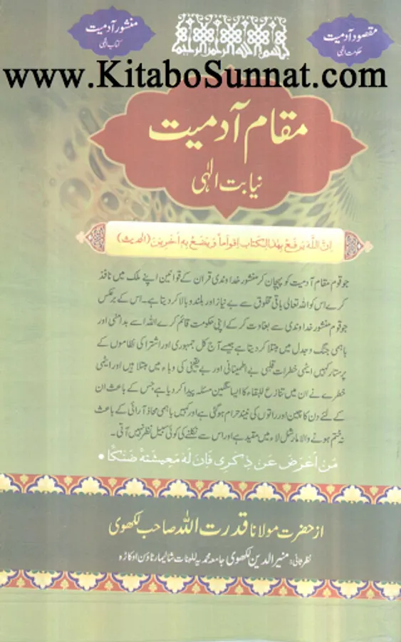 ہر بادشاہ اپنے مرکز کے تحت صوبوں اور علاقوں کی اس وقت تک مدد کرتا ہے جب تک وہ مرکز سے منسلک رہیں اور اس کے قانون کے فرمانبردار رہیں۔ اگر بغاوت کر کے دشمن سے جا ملیں یا اپنی خواہش سے قانون بنا کر جاری کر دیں اور نیابت سے انکار کر کے خود مختار بادشاہ بن بیٹھیں تو وہ بجائے امداد کے بغاوت کی سزا پاتے ہیں۔ ٹھیک اسی طرح آسمانی بادشاہت کا قانون ہے۔ اللہ تعالی نے انسان کو اپنی زمین کا انتظام سپرد کر کے زمین میں اپنا نائب قرار دیا ہے۔ جب تک انسان خدا کا نائب بن کر آسمانی قانون کے تحت زمین کا نتظام کرتا ہے اور قانون فطرت یعنی شریعت کا پابند رہتا ہے، اللہ تعالی اپنے نائب کے طور پر اس کی ہر قسم کی مدد کرتا ہے۔اور جب آسمان سے مدد مانگنے کی بجائے غیر اللہ سے مدد مانگتا ہے تو باوجود افرادی قوت کے خدائی مدد سے محروم ہو جاتا ہے۔ زیر تبصرہ کتاب "مقام آدمیت، نیابت الہی" محترم مولانا قدرت اللہ لکھوی صاحب کی تصنیف ہے، جس میں انہوں نے انسان کی اسی حقیقت کو آشکارہ کیا ہے کہ اگر انسان دنیا وآخرت دونوں جہانوں کی بھائی چاہتا ہے تو اسے اللہ کا نائب بن کر اس کے احکامات کی پابندی کرنا ہو گی اور اپنی خواہشات نفس کو کنٹرول کرنا ہوگا۔ اللہ تعالی سے دعا ہے کہ وہ مولف کی اس محنت کو اپنی بارگاہ میں قبول فرمائے اور ان کے میزان حسنات میں اضافہ فرمائے۔ آمین(راسخ).