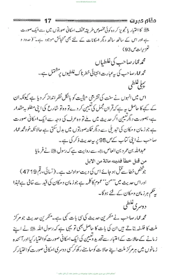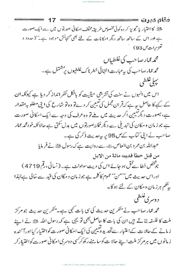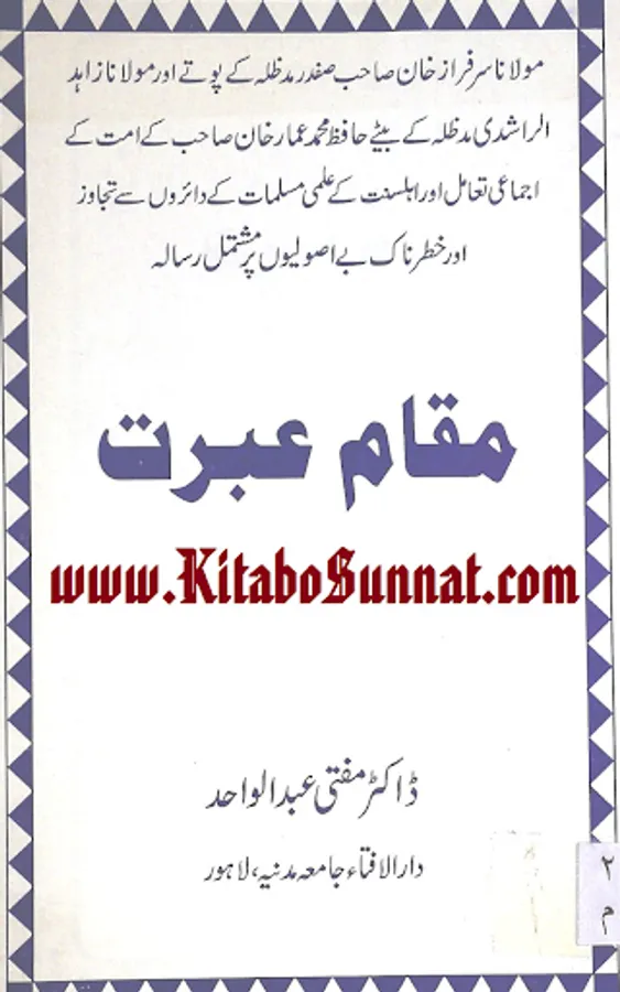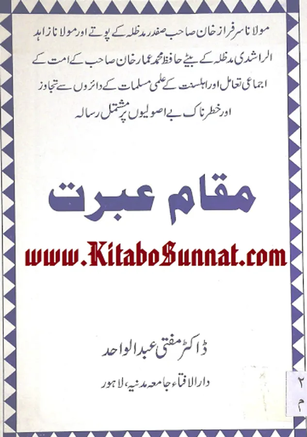 عمار خان ناصر پاک و ہند کی مشہور علمی شخصیت مولانا سرفراز خان صفدرکے پوتے اور دوسری مشہور شخصیت مولانا زاہد الراشدی﷾ کے صاحب زادے ہیں۔ گوجرانوالہ سے شائع ہونے والے ماہ نامے ’’الشریعہ‘‘کے مدیر ہیں۔معروف طریقے سے مولوی ہیں،لیکن موجودہ دور کے مشہور متجدد جاوید احمد غامدی کے شاگردِ رشید بھی ہیں۔ اُنھوں نے اپنے استاد غامدی صاحب اور اپنے افکارِ فاسدہ کے پھیلانے کو اپنا مشن بنایا ہوا ہے۔کئی اہل علم نے عمارخاں کے نظریات پر نقدکیا ہے ناقدین میں مفتی عبدالواحد صاحب سرفہرست ہیں ۔ زیر نظر کتابچہ ’’مقام عبرت‘‘ ڈاکٹر مفتی عبد الواحد عمار خان ناصر کے ناقدانہ تحریر کی کتابی صورت ہے۔یہ رسالہ مولانا سرفراز خان صفدر کےپوتے او رمولانا زاہد الراشدی کے بیٹے حافظ محمد عمار خان صاحب کےامت کےاجماعی تعامل اوراہل سنت کےعلمی مسلمات کے دائروں سے تجاوز اورخطرناک بے اصولیوں پر مشتمل ہے۔(م۔ا).