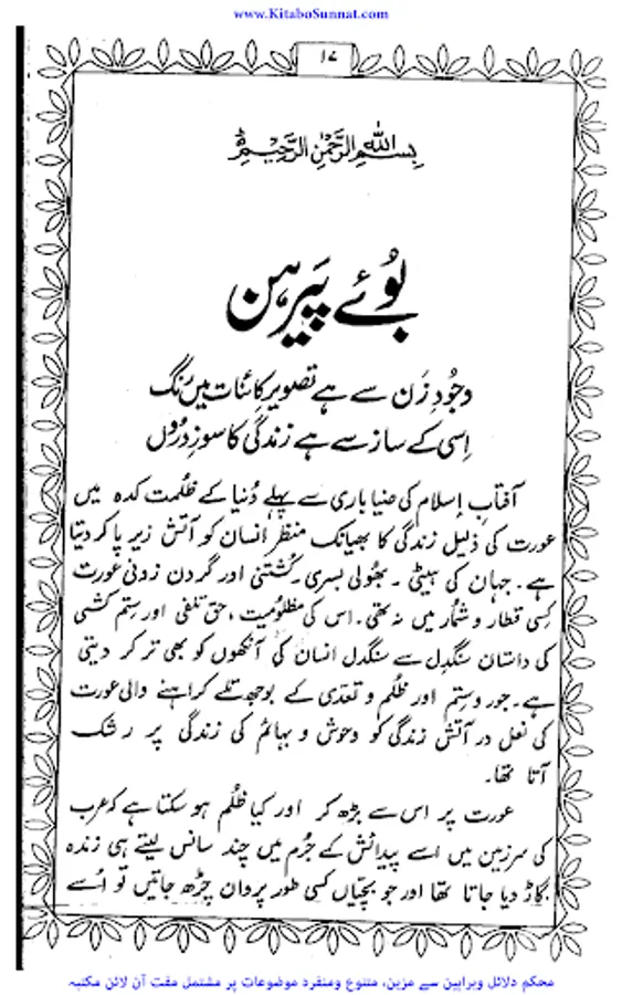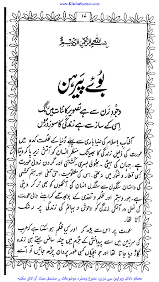 اللہ تعالیٰ نے عورت کو معظم بنایا لیکن جاہل انسانوں نےاسے لہب ولعب کاکھلونا بنا دیا اس کی بدترین توہین کی اور اس پر ظلم وستم کی انتہا کردی تاریخ کے اوراق سے پتہ چلتاہے کہ ہر عہد میں عورت کیسے کیسے مصائب ومکروہات جھیلتی رہی اور کتنی بے دردی سے کیسی کیسی پستیوں میں پھینک دی گئی لیکن جب اسلام کا ابر رحمت برسا توعورت کی حیثیت یکدم بدل گئی ۔محسن انسانیت جناب رسول اللہ ﷺ نے انسانی سماج پر احسان ِعظیم فرمایا عورتوں کو ظلم ،بے حیائی ، رسوائی اور تباہی کے گڑھے سے نکالا انہیں تحفظ بخشا ان کے حقوق اجاگر کیے ماں،بہن ، بیوی اور بیٹی کی حیثیت سےان کےفرائض بتلائے اورانہیں شمع خانہ بناکر عزت واحترام کی سب سےاونچی مسند پر فائز کردیااور عورت و مرد کے شرعی احکامات کو تفصیل سے بیان کردیا ۔ زیر تبصرہ کتاب’’مرآۃ النساء‘‘ ارض پاکستان کے معروف عالم دین مصنف کتب کثیرہ مولانا محمد سیالکوٹی کی تصنیف ہے ۔ اس کتاب میں میں دور جاہلیت کی عورت کی حالت زار بیان کر کے اسلام میں اس کے اعزاز واکرام اور عزت ورفعت کا منظر دکھایا گیا ہے ۔ اور پھر اسلام کے وہ تقاضے بیان کیے گئے ہیں جو اس نے مسلمان وفا شعار عورت پر عائد کیے ہیں۔ اور جن کا پورا کرنا سکولوں کالجوں کی لڑکیوں اور تمام مسلمان عورتوں پر فرض ہے ۔(م۔ا).