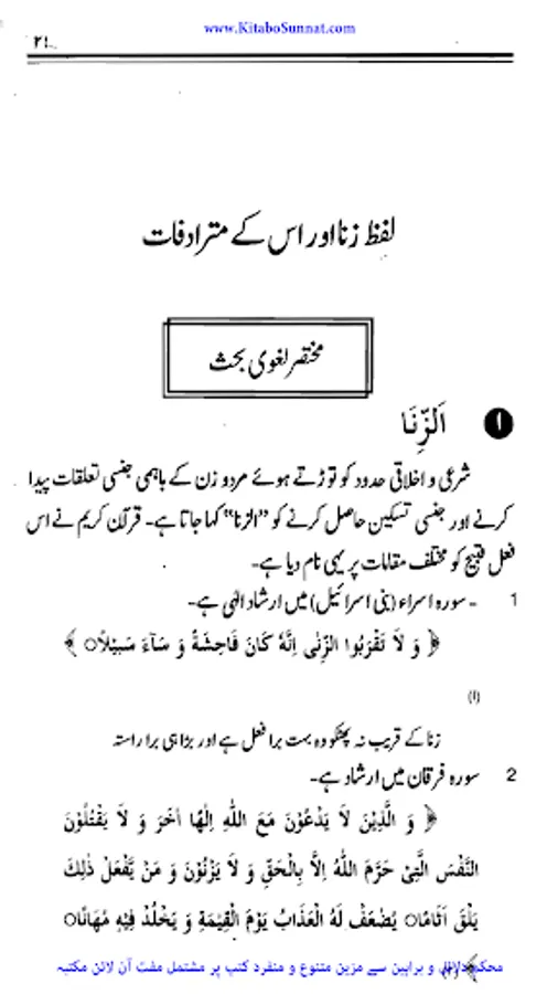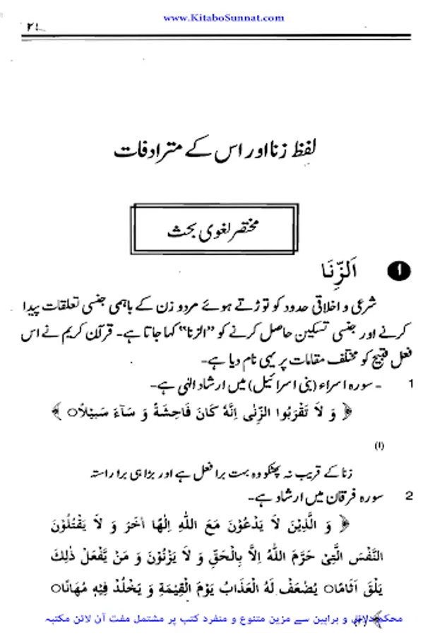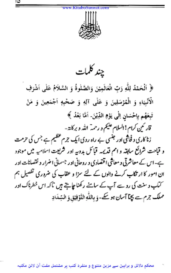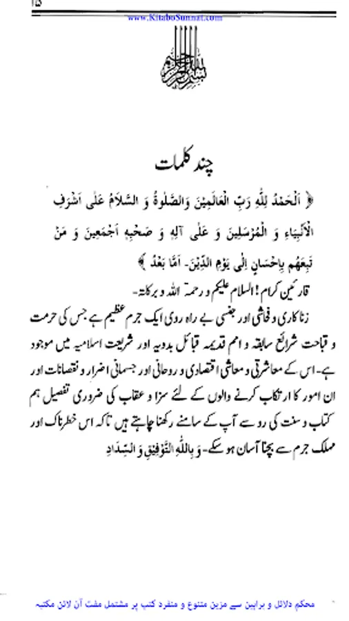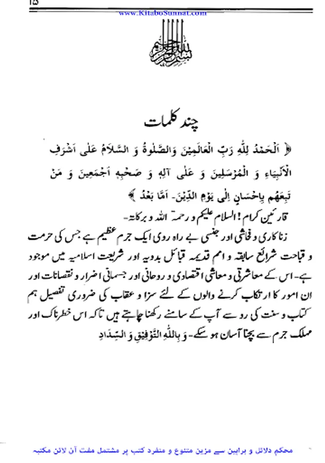 زنا کاری و فحاشی اور جنسی بے راہ روی ایک جرم عظیم ہے جس کی حرمت و قباحت شرائع سابقہ و امم قدیمہ قبائل بدویہ اور شریعت اسلامیہ میں موجود ہے ۔ فحاشی سے مراد ہر وہ عمل ہے جو ناجائز جنسی لذت کے حصول کے لئے کیا جائے یا جس کے ذریعے جنسی اعضاء یا فعل کی اس نیت سے اشاعت کی جائے کہ جنسی اشتہا بھڑکے یا جنسی تسکین حاصل ہو ۔ زنا و اغلام بازی تو واضح طور پر ایک فحش عمل ہے۔ البتہ وہ امور جو زنا سے قریب کرنے کا ذریعہ ہوں وہ بھی فحاشی ہی ہیں ۔ چنانچہ شرعی اجازت کے بغیر بوس و کنار کرنا ، نگاہوں کا جنسی مناظر دیکھنا، کانوں کا بے حیائی کی باتیں یا فحش موسیقی سننا ، ہاتھوں کا جنسی لذت حاصل کرنا ، زبان کا فحش گوئی میں ملوث ہونا اور دماغ کا فحش سوچوں غلطاں ہونا اسی لحاظ سے فحش فعل کے زمرے میں آتا ہے ۔ ہمارے معاشرے میں فحاشی کا سیلاب آیا ہوا ہے جس سے ہمارا معاشرہ تباہی کی طرف گامزن ہے۔ فحاشی کے اس سیلاب سے ہمارے ایمان و یقین اور اقدار روایات کو خطرہ ہے اور فحاشی کا یہ سیلاب اونچے اونچے گھرانوں تک پہنچ چکا ہے۔ اس فحاشی کے سیلاب کو روکنا معاشرے کے ہر فرد کی ذمہ داری ہے ۔ زیر تبصرہ کتاب’’مذمت فحاشی و زناکاری‘‘ مولانا محمد منیر قمر ﷾ کی تصنیف ہے اس کتاب میں انہوں نے معاشرتی و معاشی اقتصادی و روحانی اور جسمانی اضرار و نقصانات اور ان امور کا ارتکاب کرنے والے کے لیے سزا و عقاب کی ضروری تفصیل کو کتاب و سنت کی روشنی میں سپرد قلم کیا ہے تاکہ اس خطرناک اور مہلک جرم سے بچا جاسکے۔ (م۔ا).