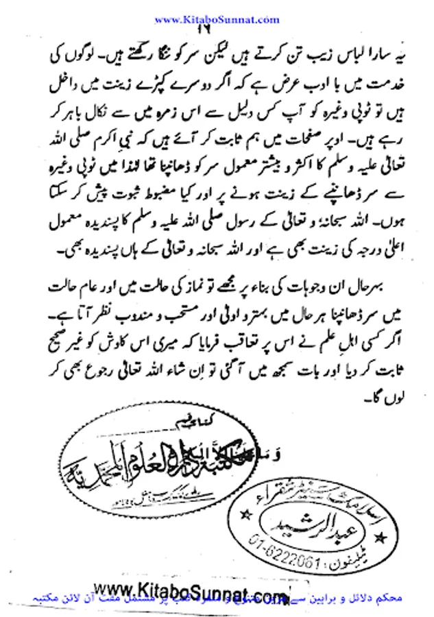نماز دین اسلام کے بنیادی پانچ ارکان میں سے کلمہ توحید کے بعد ایک اہم ترین رکن ہے۔اس کی فرضیت قرآن و سنت اور اجماعِ امت سے ثابت ہے۔ یہ شب معراج کے موقع پر فرض کی گئی ،اور امت کو اس تحفہ خداوندی سے نوازا گیا۔اس کو دن اور رات میں پانچ وقت پابندی کے ساتھ باجماعت ادا کرنا ہر مسلمان پر فرض اور واجب ہے۔ نماز دین کا ستون ہے۔ نماز جنت کی کنجی ہے۔ نماز مومن کی معراج ہے۔ نماز نبی کریمﷺ کی آنکھوں کی ٹھنڈک ہے۔ نماز قرب الٰہی کا بہترین ذریعہ ہے۔ نماز اﷲ تعالیٰ کی رضا کاباعث ہے۔ نماز جنت کا راستہ ہے۔ نماز پریشانیوں اور بیماریوں سے نجات کا ذریعہ ہے۔ نماز بے حیائی سے روکتی ہے۔ نماز برے کاموں سے روکتی ہے۔ نماز مومن اور کافر میں فرق کرتی ہے۔ نماز بندے کو اﷲ تعالیٰ کے ذکر میں مشغول رکھتی ہے۔لیکن اللہ کے ہاں وہ نماز قابل قبول ہے جو نبی کریم ﷺ کے معروف طریقے کے مطابق پڑھی جائے۔ آپ نے فرمایا:تم ایسے نماز پڑھو جس طرح مجھے پڑھتے ہوئے دیکھتے ہو۔ نماز کے اختلافی مسائل میں سے ایک اہم ترین مسئلہ سر ڈھانپنے کے بارے میں ہے۔ زیر تبصرہ کتابچہ "نماز میں سر ڈھانپنے کا مسئلہ" جماعت اہل حدیث کے نامور محقق اور عالم دین محترم مولانا سید محب اللہ شاہ راشدی صاحب کی تصنیف ہے ،جس میں انہوں نے نماز میں سر ڈھانپنے کے حوالے سے گفتگو فرمائی ہے، تاکہ تما م مسلمان اپنی نماز یں نبی کریم ﷺ کے طریقے کے مطابق پڑھ سکیں۔ اللہ تعالی سے دعا ہے کہ وہ مولف کی اس کاوش کو اپنی بارگاہ میں قبول فرمائے اور ان کے میزان حسنات میں اضافہ فرمائے۔ آمین (راسخ).