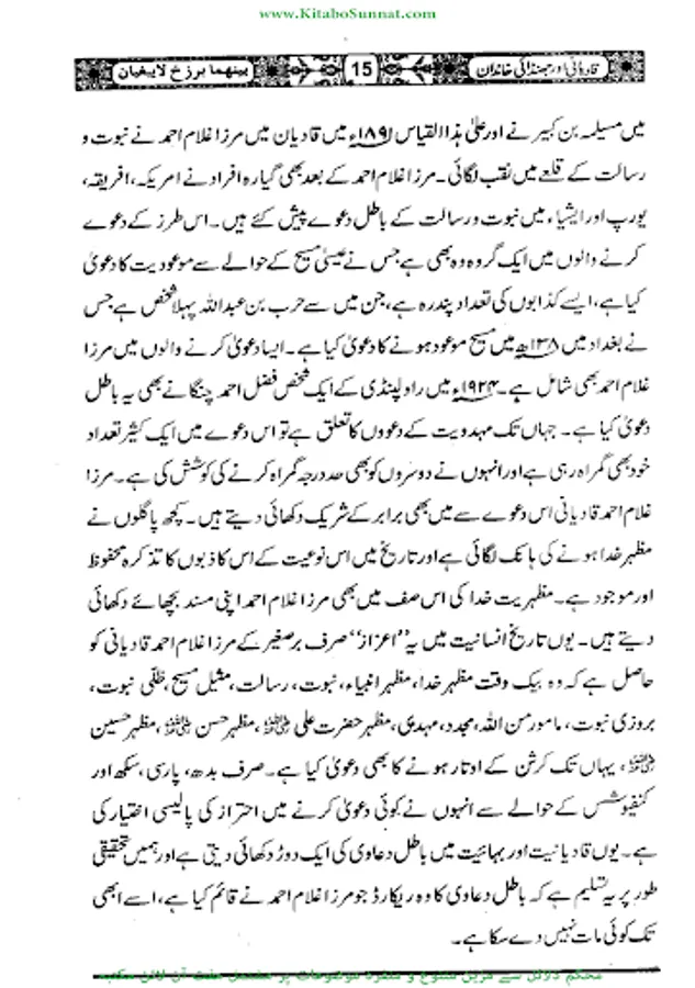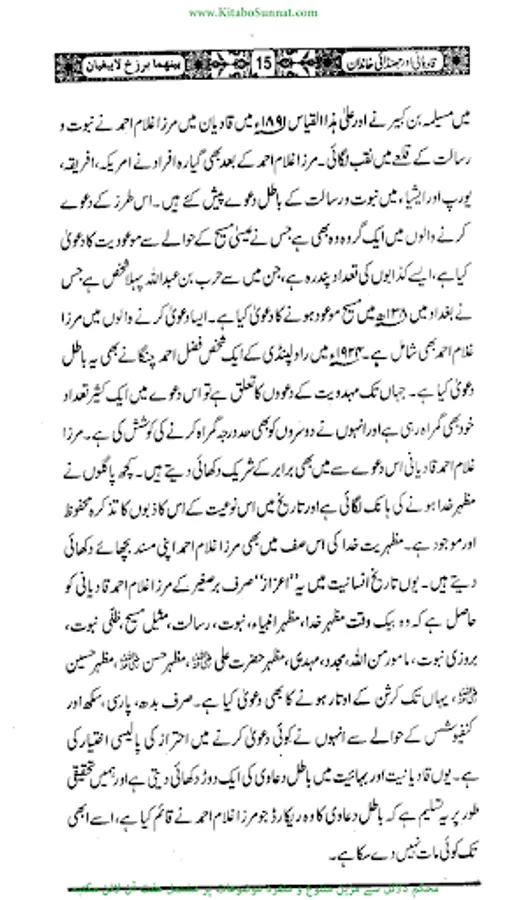 اللہ تعالی نے نبی کریم ﷺ کو آخری نبی اور رسول بنا کر بھیجا ہے۔آپ خاتم النبیین اور سلسلہ نبوت کی بلند مقام عمارت کی سب سے آخری اینٹ ہیں،جن کی آمد سے سلسلہ نبوی کی عمارت مکمل ہو گئی ہے۔آپ کے بعد کوئی برحق نبی اور رسول نہیں آسکتا ہے ۔لیکن آپ نے فرمایا کہ میرے بعد متعدد جھوٹے اور کذاب آئیں گے جو اپنے آپ کو نبی کہلوائیں گے۔آپ کے بعد آنے والے متعدد کذابوں میں سے ایک جھوٹا اور کذاب مرزا غلام احمد قادیانی ہے ،جس نے نبوت کا دعوی کیا اور شریعت کی روشنی میں کذاب اور مردود ٹھہرا۔لیکن اللہ رب العزت نے اس کےجھوٹ وفریب کوبے نقاب کرد یا اور وہ دنیا وآخرت دونوں جہانوں میں ذلیل وخوار ہو کر رہ گیا۔ زیر نظر کتاب ’’ قادیانی اور جھنڈائی خاندان ‘‘ مرزا غلام احمد قادیانی کی حقیقت پر لکھی گئی ہے۔جو قادیانی فتنے کے خلاف لکھنے والے معروف قلمکار عبد الرحمن میمن نے علامہ سید بدیع الدین شاہ راشدی صاحب کی کتاب ’’بینھما برزخ لا یبغیان ‘‘ کا اردو ترجمہ کیاہے۔مولف موصوف کی قادیانیوں کے حوالے سے اس سے پہلے بھی کئی کتب سائٹ پر اپلوڈ کی جا چکی ہیں ۔ان سے پہلے محترم محمد متین خالد بھی اس فتنے کے خلاف ایک موثر آواز اٹھا چکے ہیں۔مولف نے اس میں قادیانیوں کے حوالے سے تہلکہ خیز انکشافات،ناقابل یقین حقائق اور چشم کشا واقعات سے پردہ اٹھایا گیا ہے،اور قادیانی کلچر سے متعلق ہوش ربا مشاہدات وتجربات کا آنکھوں دیکھا حال بیان کیا ہے۔ اللہ تعالی ان کی اس محنت کو قبول ومنظور فرمائے اور تمام مسلمانوں کو اس فتنے سے محفوظ فرمائے۔آمین(رفیق الرحمن).