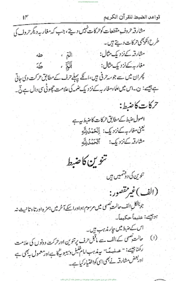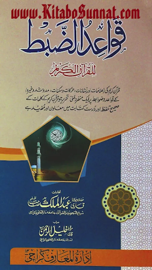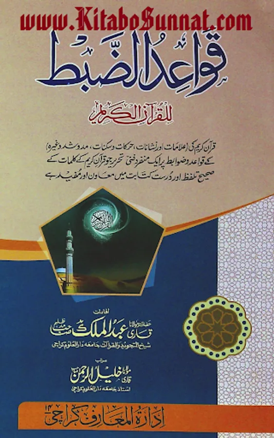 قرآن مجید کی درست تلاوت کے لئے صحیح کتابت والا مصحف ہر مسلمان کی ضرورت ہے۔اور اس مقصد کے لئے کتابت کی صحت علم الضبط کے بغیر ممکن نہیں۔لغوی طور پر ضبط کا معنی ہے کسی شے کی حفاظت کرنے میں انتہا تک جانا ہے، جبکہ اِصطلاحاً علم ضبط سے مراد وہ علم ہے جس کے ذریعے حرف کو پیش آنے والے حالات (مثلاً حرکت، سکون، شد اورمد وغیرہ) کی پہچان ہوتی ہے ،اس کو شکل بھی کہتے ہیں۔علم الضبط کا موضوع وہ علامات ونشانات (مثلاً حرکات ثلاثہ، سکون ،مد وشد وغیرہ)ہیں ،جوکلمات قرآن کے درست تلفظ اوران کی نطقی کیفیات کے تحفظ میں مدد دیتے ہیں۔علم ضبط کے سب سے پہلے موجد ابو الاسود الدؤلی ہیں۔ جنہوں نے لفظوں کے ذریعے شکل کے ایک طریقہ کار کی ابتدا ء کی۔عربی اردو زبان میں علم ضبط پر متعدد کتب موجو د ہیں۔ زیر نظر کتاب’’ قواعد الضبط للقرآن الکریم ‘‘قاری عبد المالک (شیخ التجوید والقراءات ۔جامعہ دار العلوم ، کراچی) کے ان افادات کا مجموعہ ہے جو انہوں نے شیخ القراء قاری احمد میاں تھانوی﷾ کے ایما پر 1429ھ میں جامعہ دار العلوم ، کراچی میں دورہ حدیث سے فارغ ہونے والے طلباء کے سامنے پیش کیے ۔موصوف نے طلباء تخصص کے سامنے رسم کے لیے ’’ دلیل الحیران‘‘ اور’’ ایضاح المقاصد‘‘ کا تقابلہ جائزہ پیش کیا ہے اور ضبط کےلیے ’’سمیر الطالبین‘‘ کو بنیاد بنا کر ضبط سے متعلقہ ضروری کتب ’’ دلیل الحیران شرح مورد الظمآن ،’’سفیر العالمین‘‘، ’’ ارشاد الطالبین الی ضبط الکتاب المبین‘‘،’’ الطراز علی ضبط الخراز‘‘ وغیرہ کتب سے استفاد ہ کر کے قوابط ضبط پر اردوزبان میں ’’ تخصص فی القراءات وعلوم القرآن ‘‘ کے طلبا کو علم الضبط کی ہر بحث کا خلاصہ لکھوایا جسے بعد ازاں مولانا قاری خلیل الرحمٰن صاحب (استاذ جامعہ دار العلوم ،کراچی) نے مرتب کیا اور’’ ادارۃ المعارف، کراچی نےطلبا علوم قرآن کے استفادہ کےلیے کتابی صورت میں شائع کیا ہے۔یہ کتاب قرآن کریم کی علامات، اور نشانات، حرکات وسکنات ، مد وشد وغیرہ کے قواعد وضوابط پر ایک منفرد فنی تحریر ہے جو قرآنِ کریم کے کلمات کے صحیح تلفظ اور درست کتابت میں معاون اور مفید ہے ۔اللہ تعالیٰ ان کی اس کاوش کو قبول فرمائے ۔۔(آمین) (م۔ا).