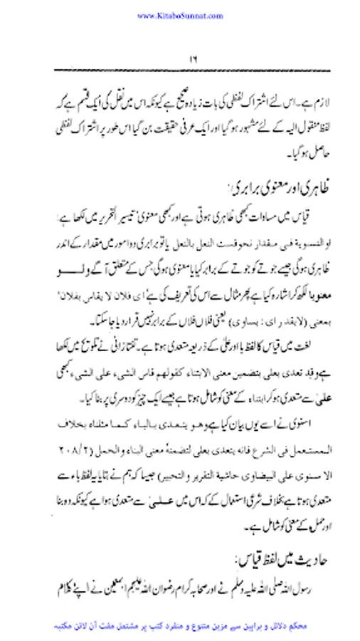 علم اصول فقہ وہ علم جس میں احکام کے مصادر ،ان کے دلائل کے ، استدلال کے مراتب اور استدلال کی شرائط سےبحث کی جائے اوراستنباط کے طریقوں کووضع کر کے معین قواعد کا استخراج کیا جائے کہ جن قواعد کی پابندی کرتے ہوئے مجتہد تفصیلی دلائل سے احکام معلوم کرے ۔علامہ ابن خلدون کے بقول اس وجہ سے یہ علم علوم شریعت میں سے سب سے عظیم، مرتبے میں سب سے بلند اور فائدے کے اعتبار سے سب سے زیادہ معتبرہے (مقدمہ ابن خلدون ص:452)جس طرح کسی بھی زبان کو جاننے کےلیے اس زبان کے قواعد واصول کو سمجھنا ضروری ہے اسی طر ح فقہ میں مہارت حاصل کرنےکے لیے اصول فقہ میں دسترس اور اس پر عبور حاصل کرناضروری ہے اس علم کی اہمیت کے پیش نظر ائمہ فقہاء و محدثین نے اس موضوع پر کئی کتب تصنیف کی ہیں اولاً امام شافعی نے الرسالہ کے نام سے کتاب تحریرکی پھر اس کی روشنی میں دیگر اہل علم نے کتب مرتب کیں۔ اصول فقہ کے اصولوں میں ایک سے ایک اصول قیاس بھی ہے ۔قیاس اصول اربعہ یعنی کتاب وسنت ، اجماع، اور قیاس میں سےایک اصل ہے ۔کتب اصول فقہ میں اس پر تفصیلی ابحاث موجود ہیں اور الگ سے کتب بھی موجود ہیں۔ زیر تبصرہ کتاب ’’ قیاس ایک تقابلی مطالعہ ‘‘ کویت عالم جناب عمر سلیمان الاشقر کی تصنیف ہے اس میں انہوں نے قیاس کے موضوع پر موضوعی بحث کر کے مختصر طور پر ہر پہلو کو اضح کردیا ہے۔ موصوف نےاس میں قیاس کے لغوی واصطلاحی مفہوم اور قیاس واجتہاد ورائے کےباہمی فرق پرروشنی ڈالی ہے ۔نیز قیاس کی حجیت پر بحث کرتے ہوئے علماء کے مختلف مذاہب اور نقطہ ہائے نظر کا ذکر کیا ہے۔ قیاس کے ماننے او نہ ماننے والے دونوں فریق کے دلائل اور ساتھ ہی ان پراعتراضات وجوابات ذکر کر کےدونوں قسم کی آراء کے مابین تطبیق کی کوشش کی ہے اور قیاس کے متعلق رسول اللہﷺ اور صحابہ کرام کے موقف کو بھی ذکر کیا ہے۔اور خاتمہ کتاب میں قیاس کی مخالفت کے لیے مشہور اہل ظاہر کے رویے پر محاکمہ اور ان شرائط کی توضیح کی ہےجن کاوجود قیاس کے لیے ضروری ہےنیز اس سوال کاجواب بھی دیا ہے کہ صریح حکم کی تلاش وجستجو سے پہلے قیاس جائز ہوسکتا ہے یا نہیں۔اس اہم کتاب کاسلیس ترجمہ ادارۃ البحوث جامعہ سلفیہ ،بنارس کے رفیق جناب مولانا عبد الوہاب حجازی صاحب نے کیا ہے۔اللہ تعالیٰ مصنف ، مترجم اور ناشرین کی اس کاوش کوقبول فرمائے ۔(آمین) (م۔ا).
